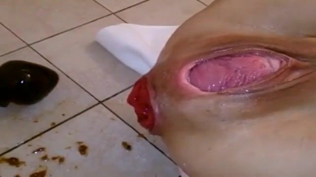 Shitting with her prolapsing rosebud after anal fisti