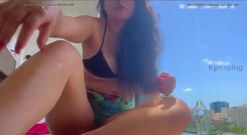 Hot girl shitting and pissing on balcony