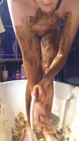Tiny girl, huge shit, full body smearing
