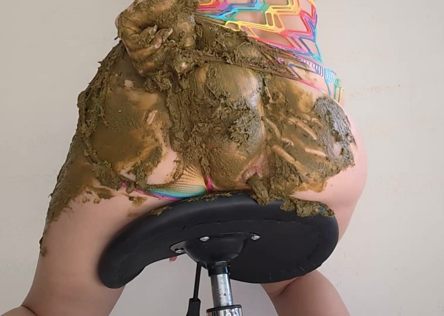 Big poop in rainbow lingerie