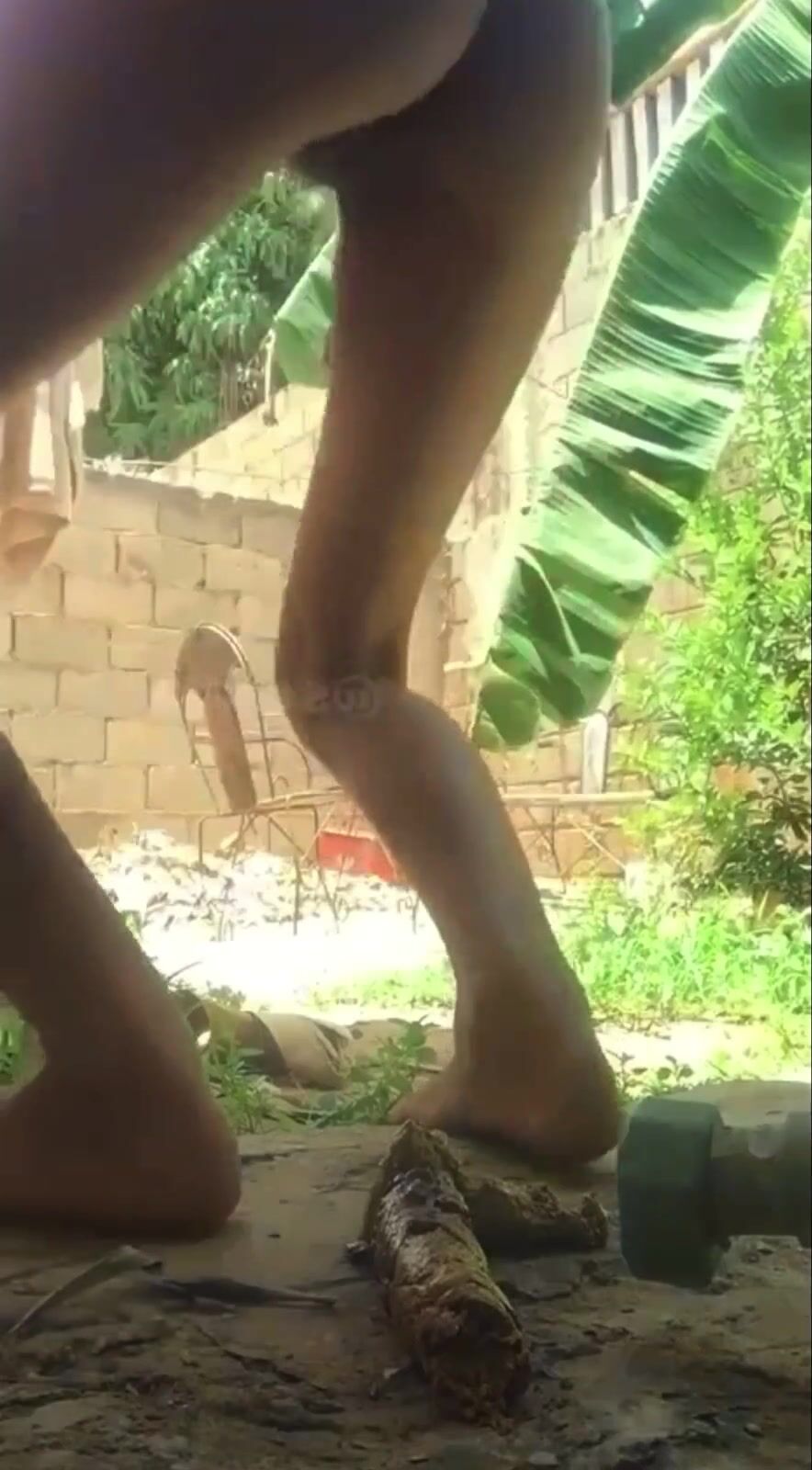 Woman on her side births huge turd.