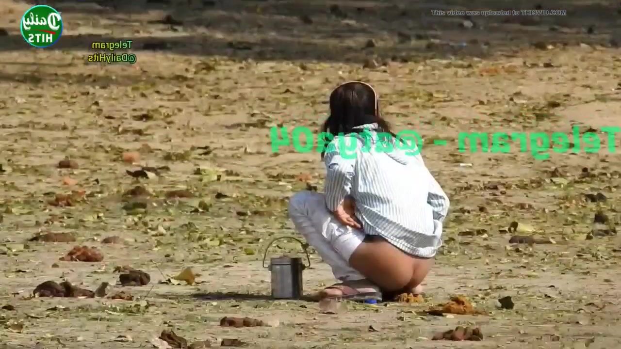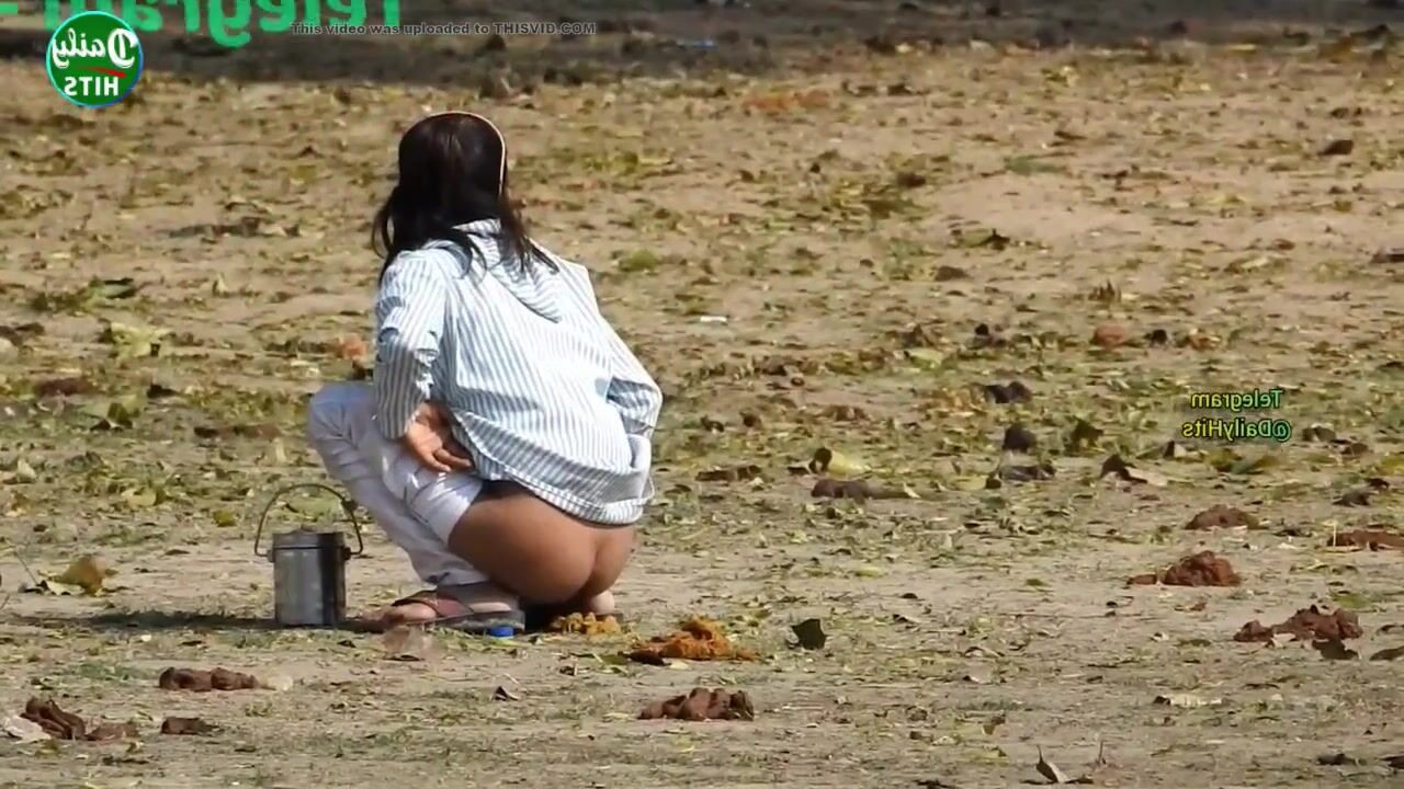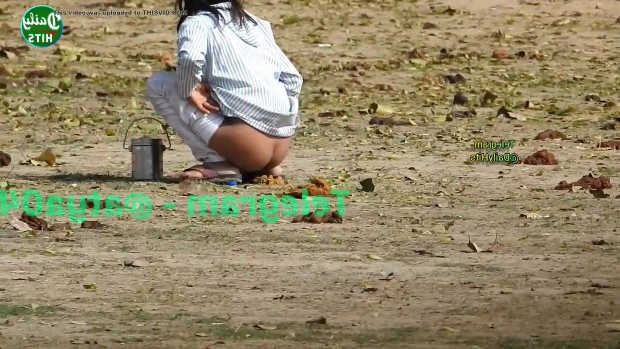 Skinny desi girl shitting outdoor