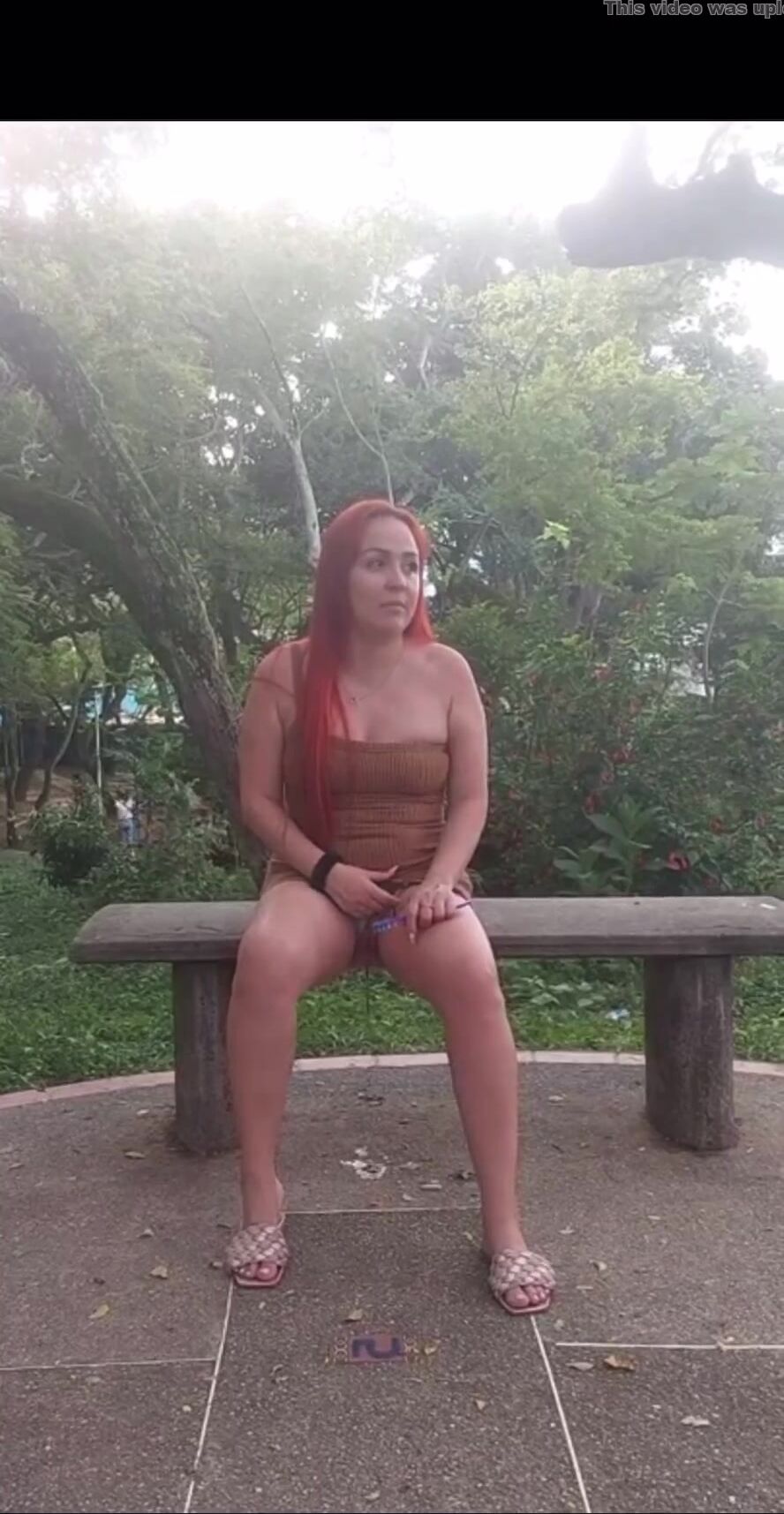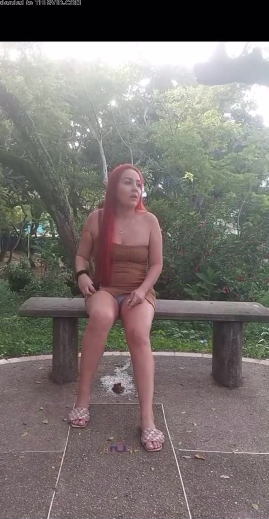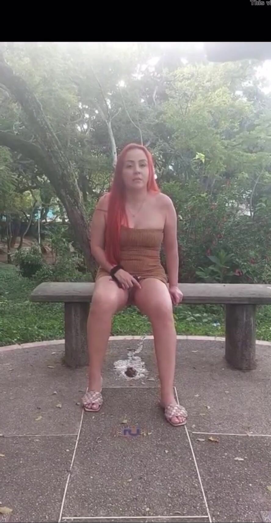 latina poop outside on bench
