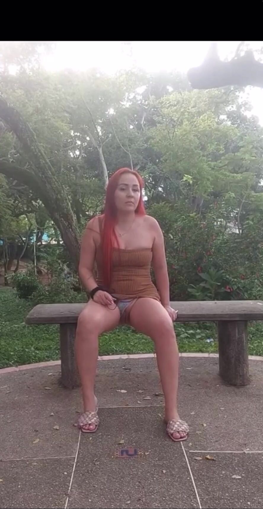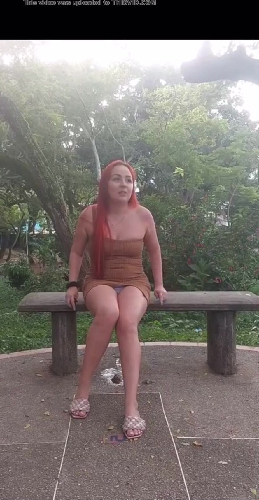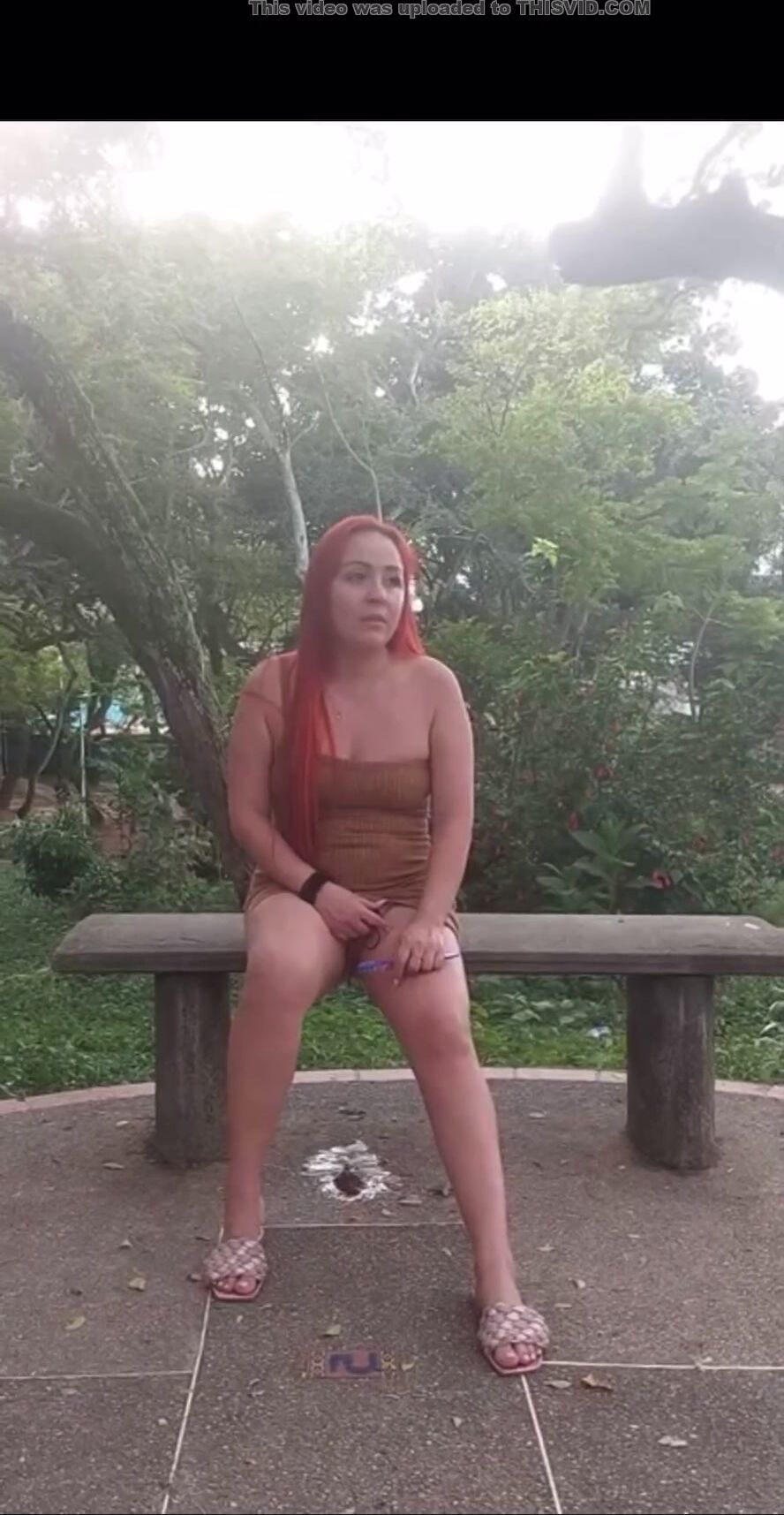 latina poop outside on bench