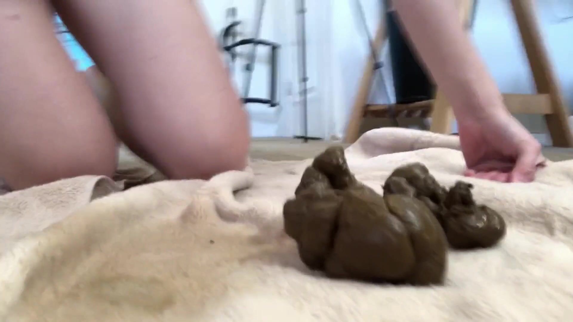 Girl poops in pan scene