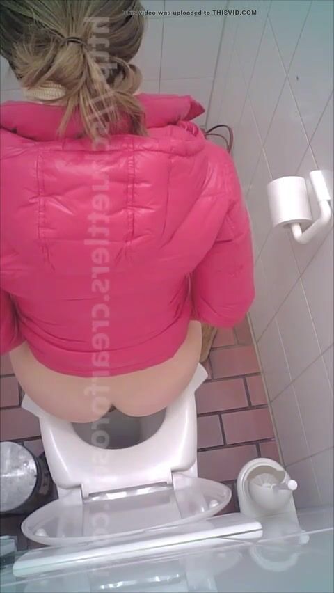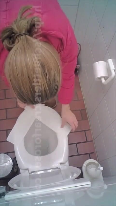 woman poop in toilet overhead view