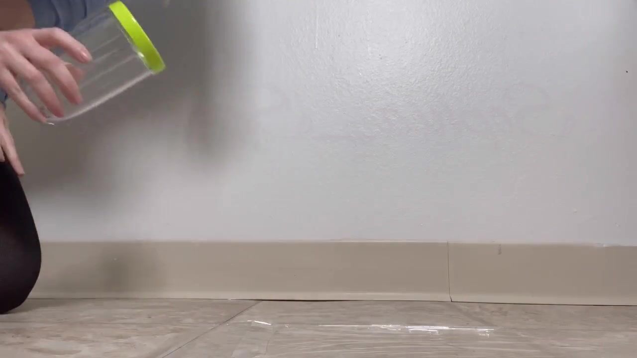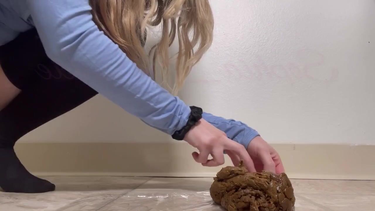 Blonde with nice ass takes a big dump on knees.