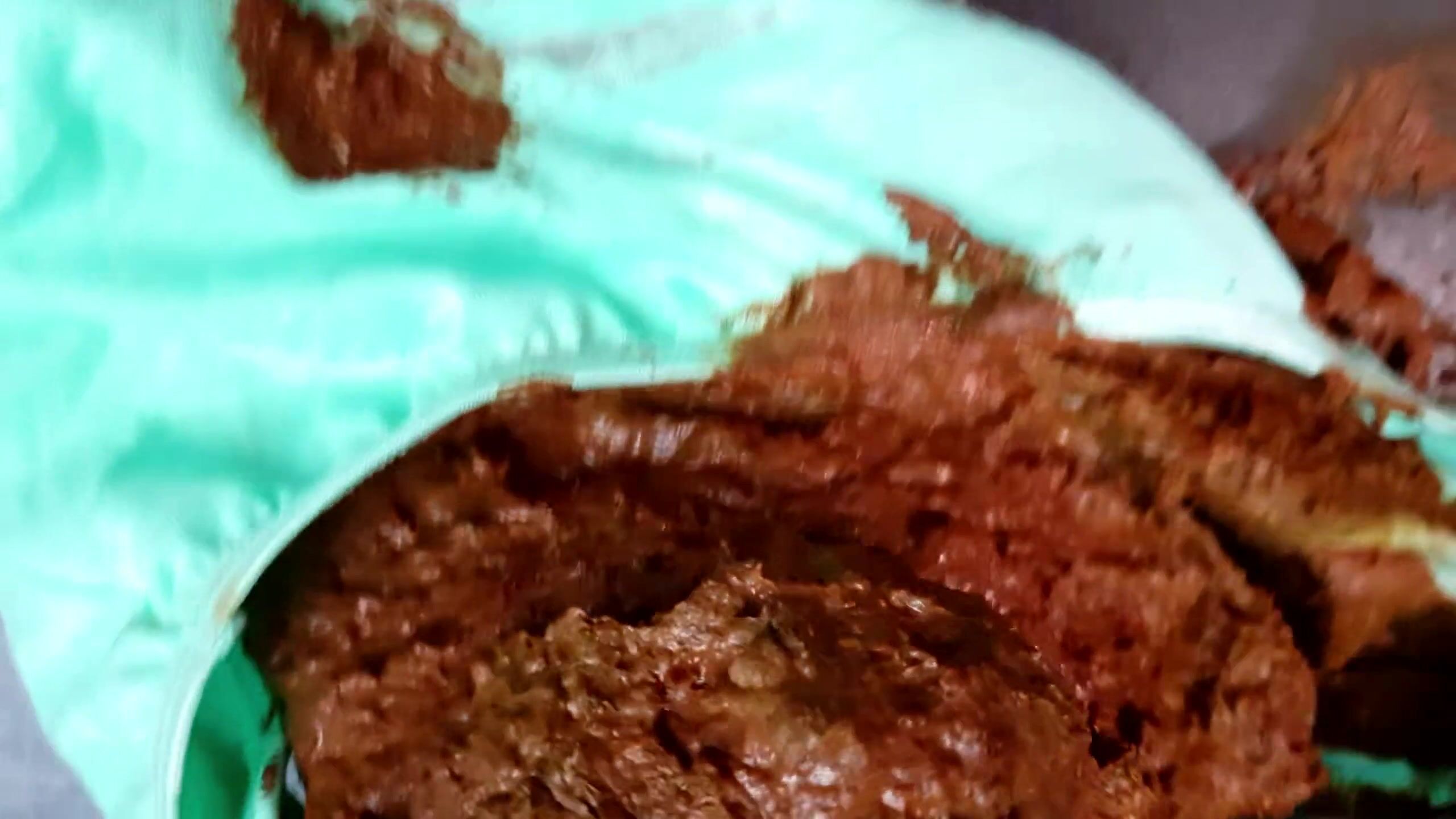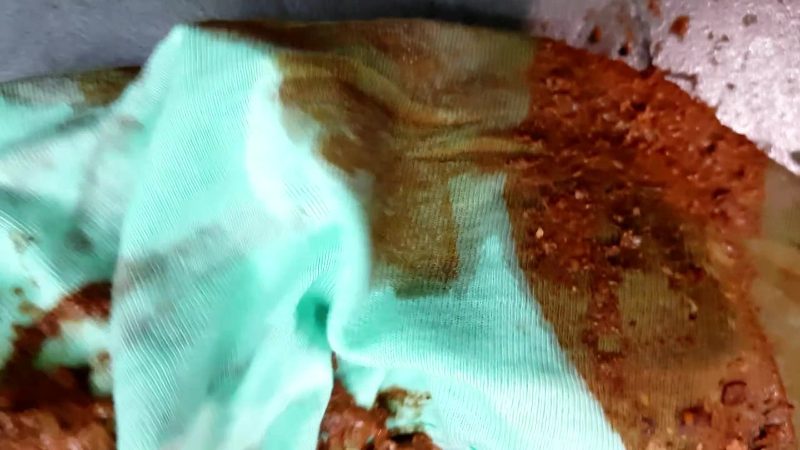 Huge messy poop in teal panty under red dress