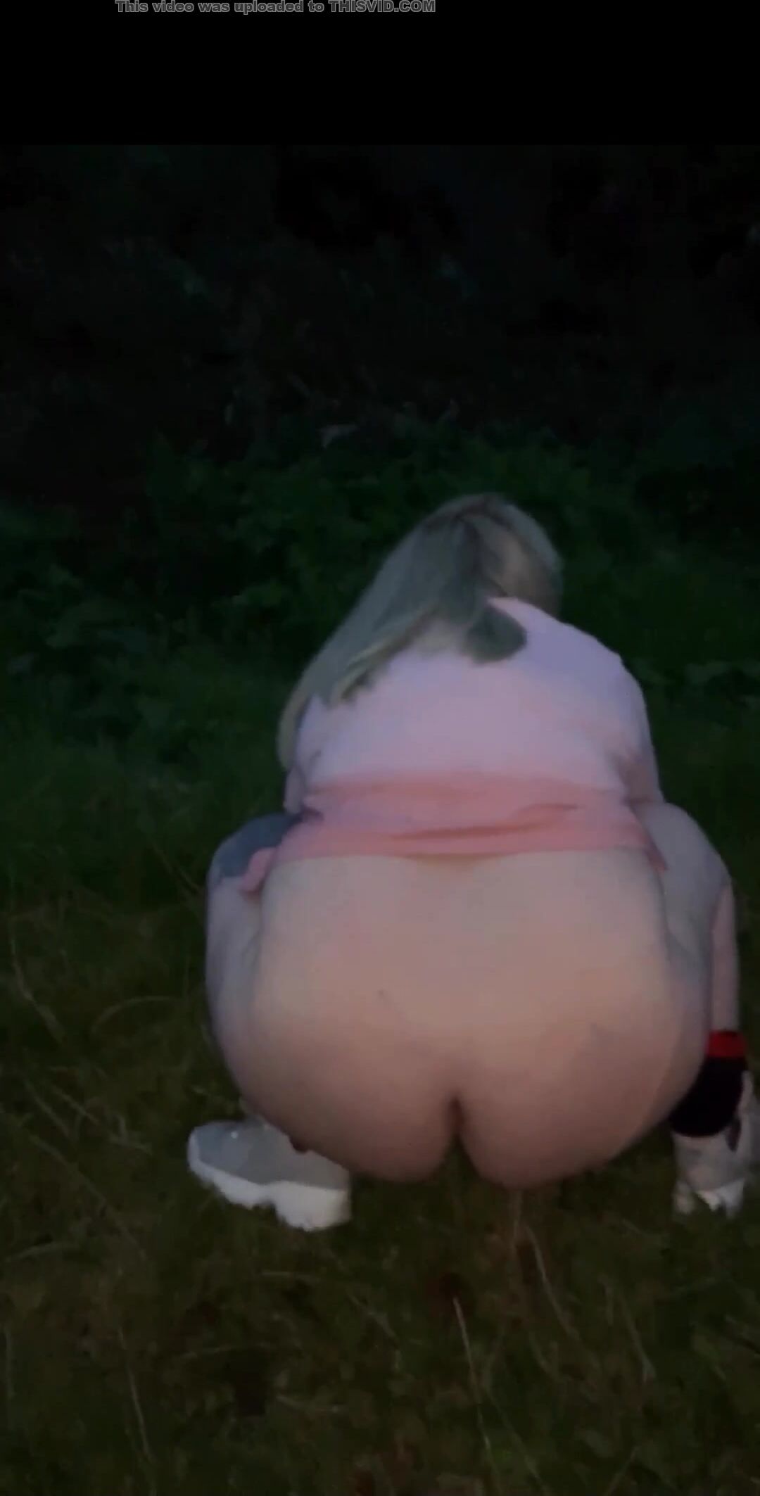 UK chubby blonde outside poo
