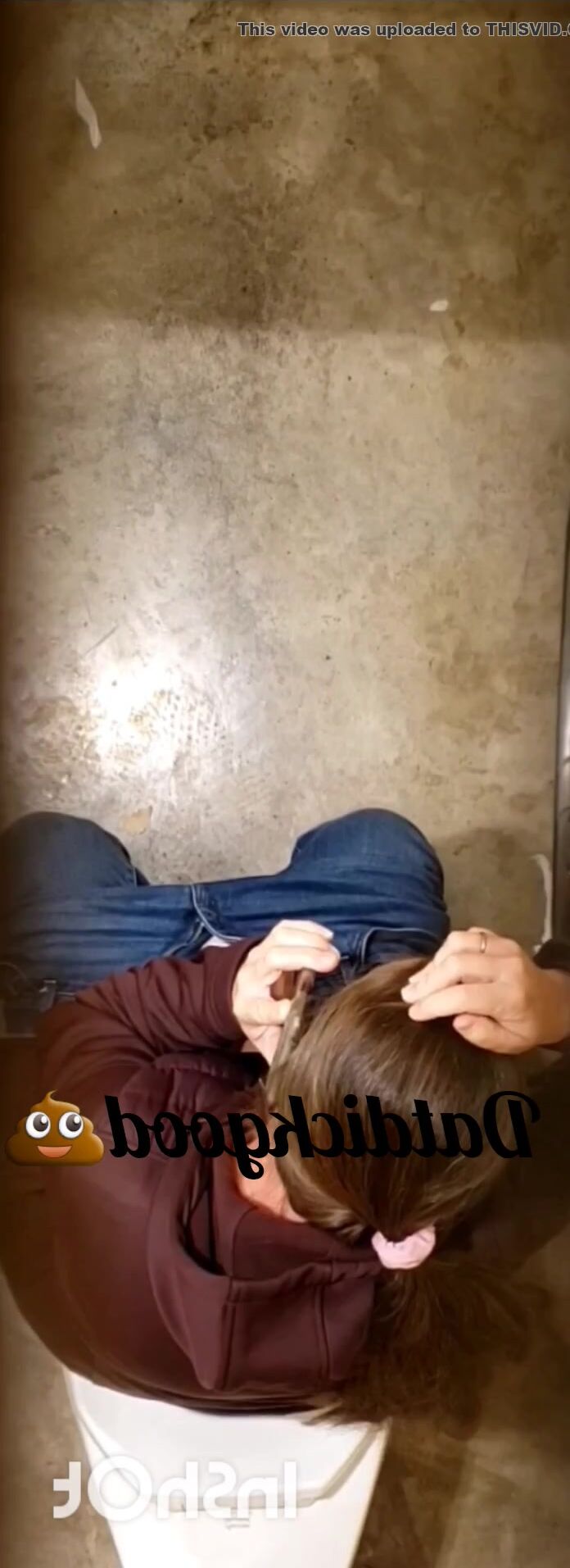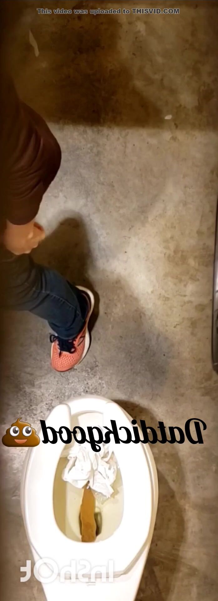 Girl open wide legs and shitting on the toilet floor