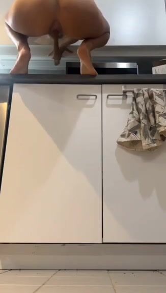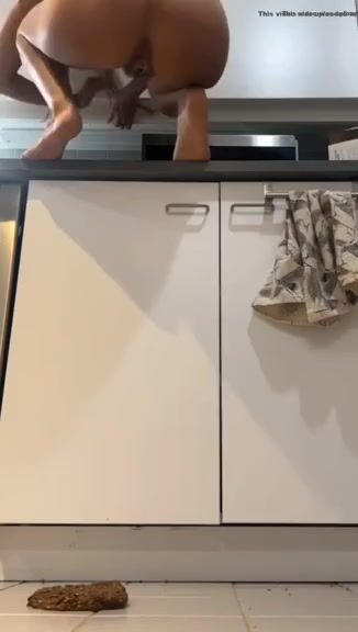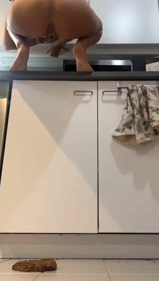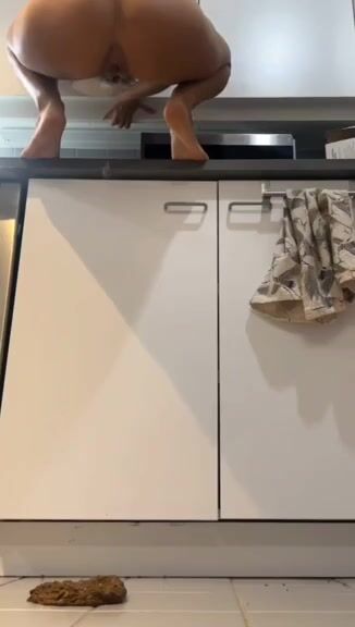Hot girl shits on kitchen floor