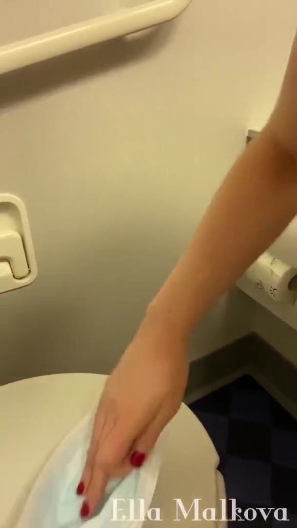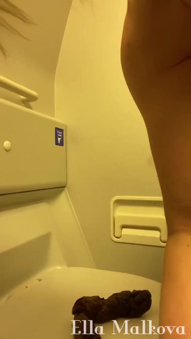 Naughty English Girl shits on plane toilet seat