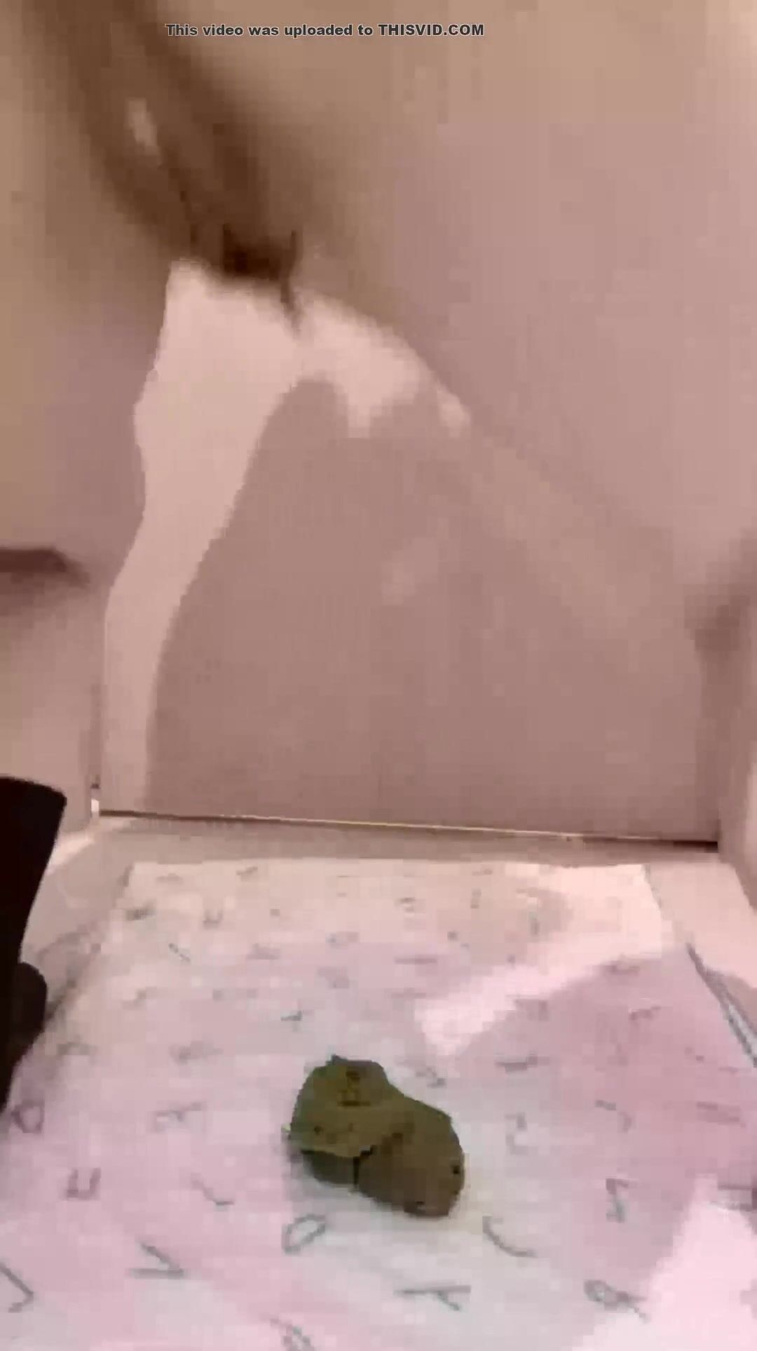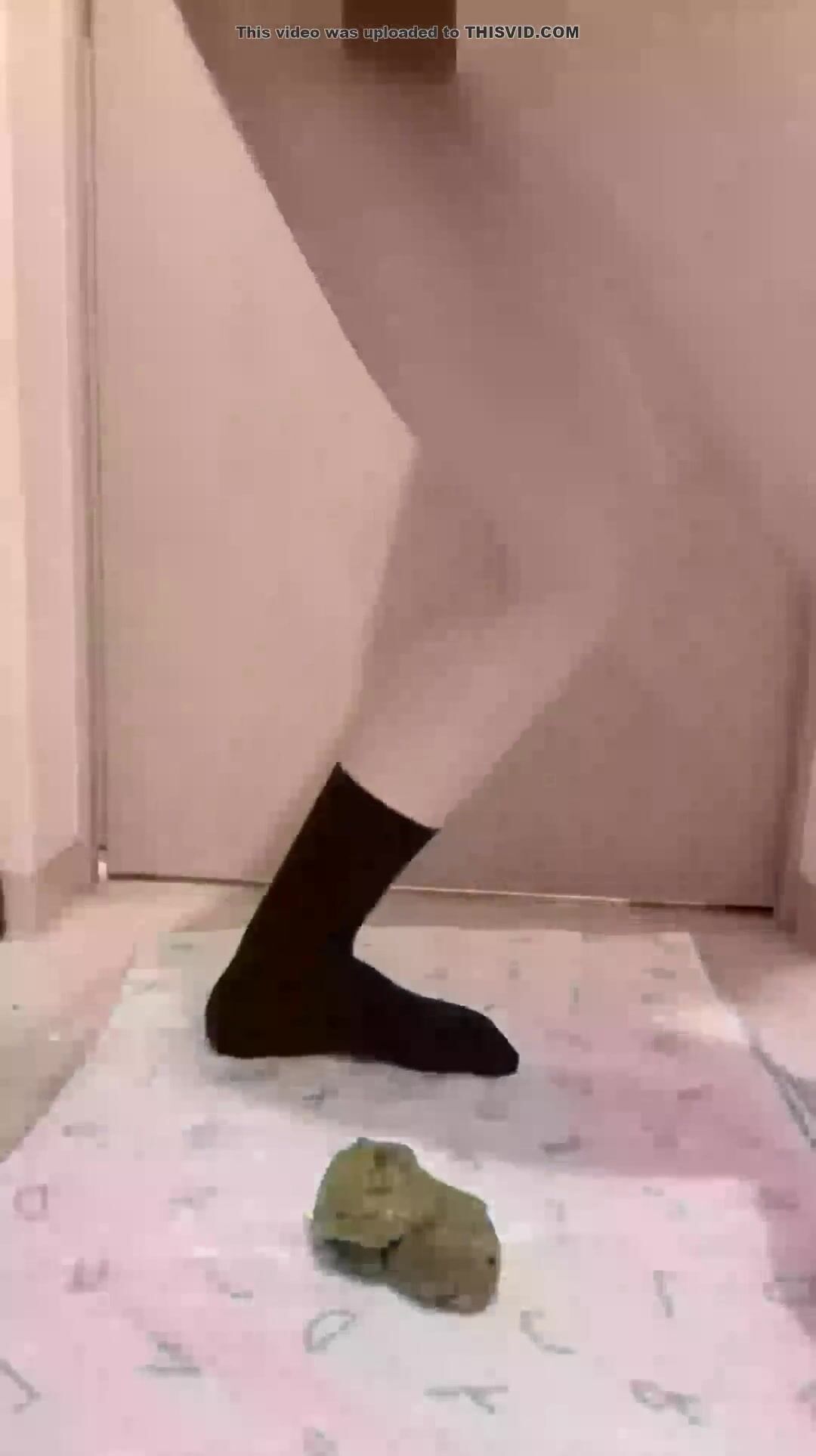 Girl open wide legs and shitting on the toilet floor