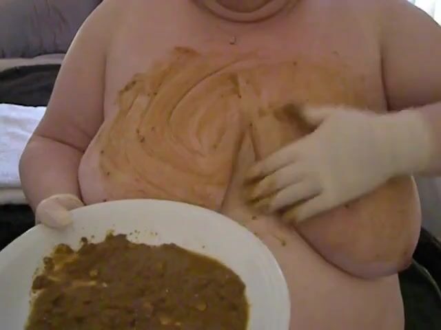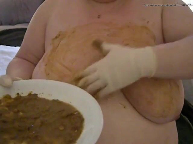 Smearing poo on huge tits..