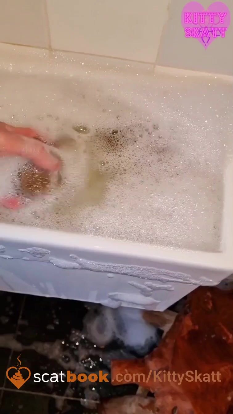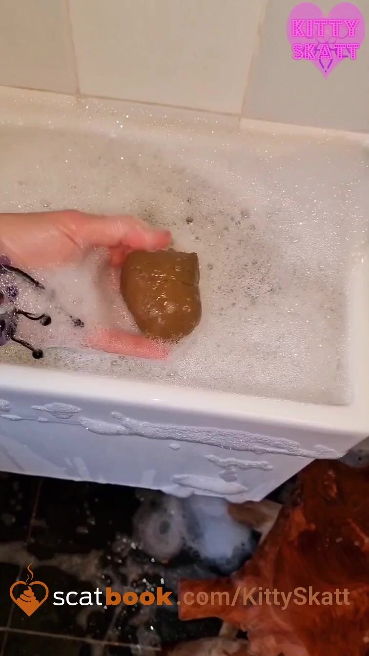 Huge thick constipated shit in bubbly sink