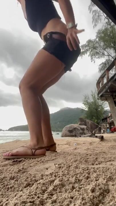 Hot blonde pooping on the beach