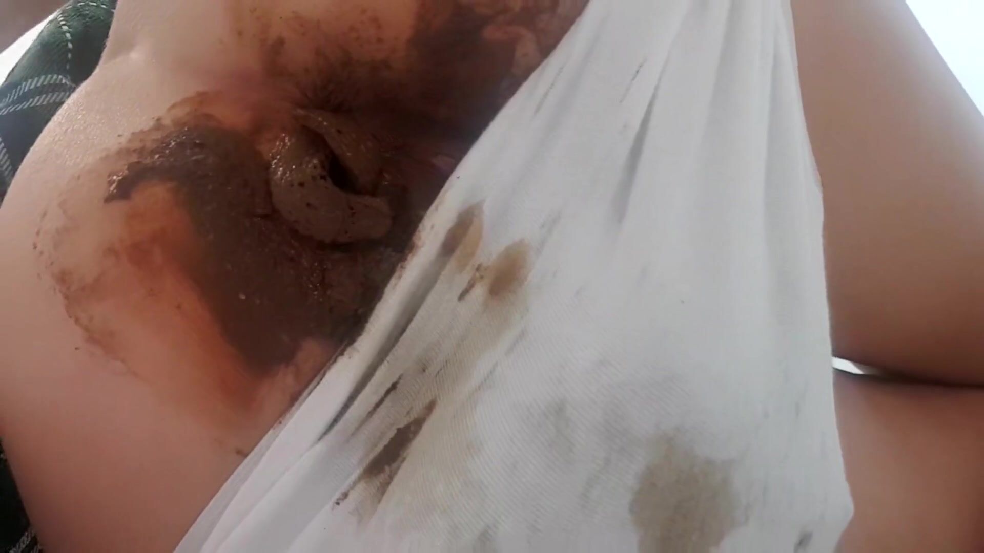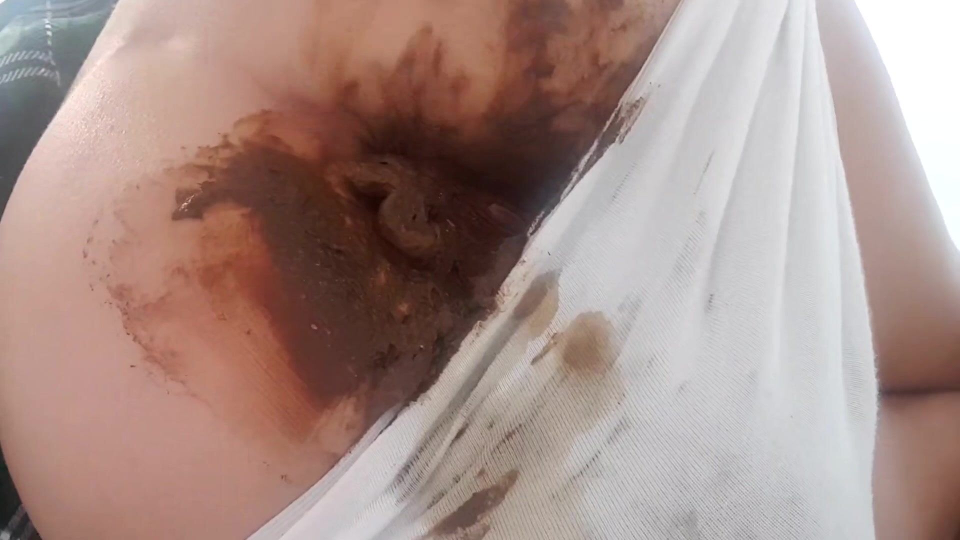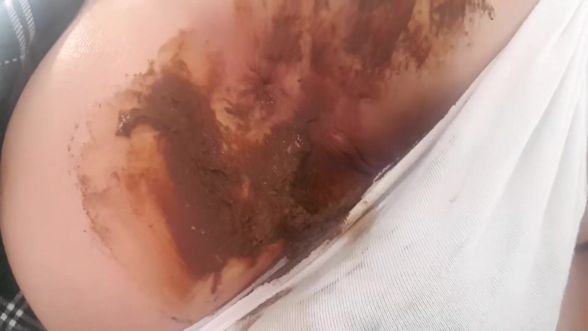 Big white panty poop under skirt