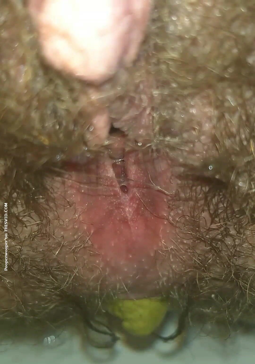 Hairy Ebony Pushes out a Fat Turd (HD)