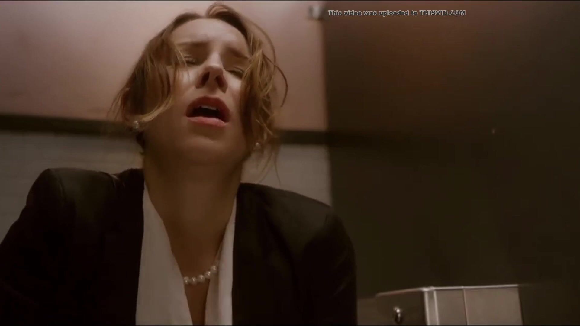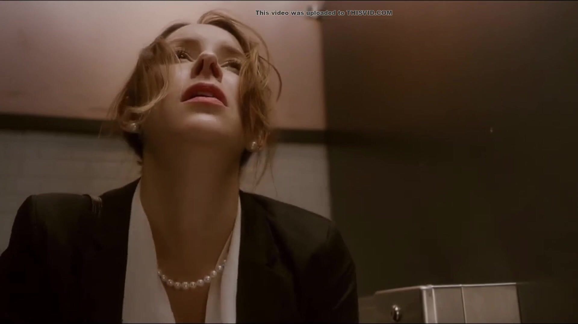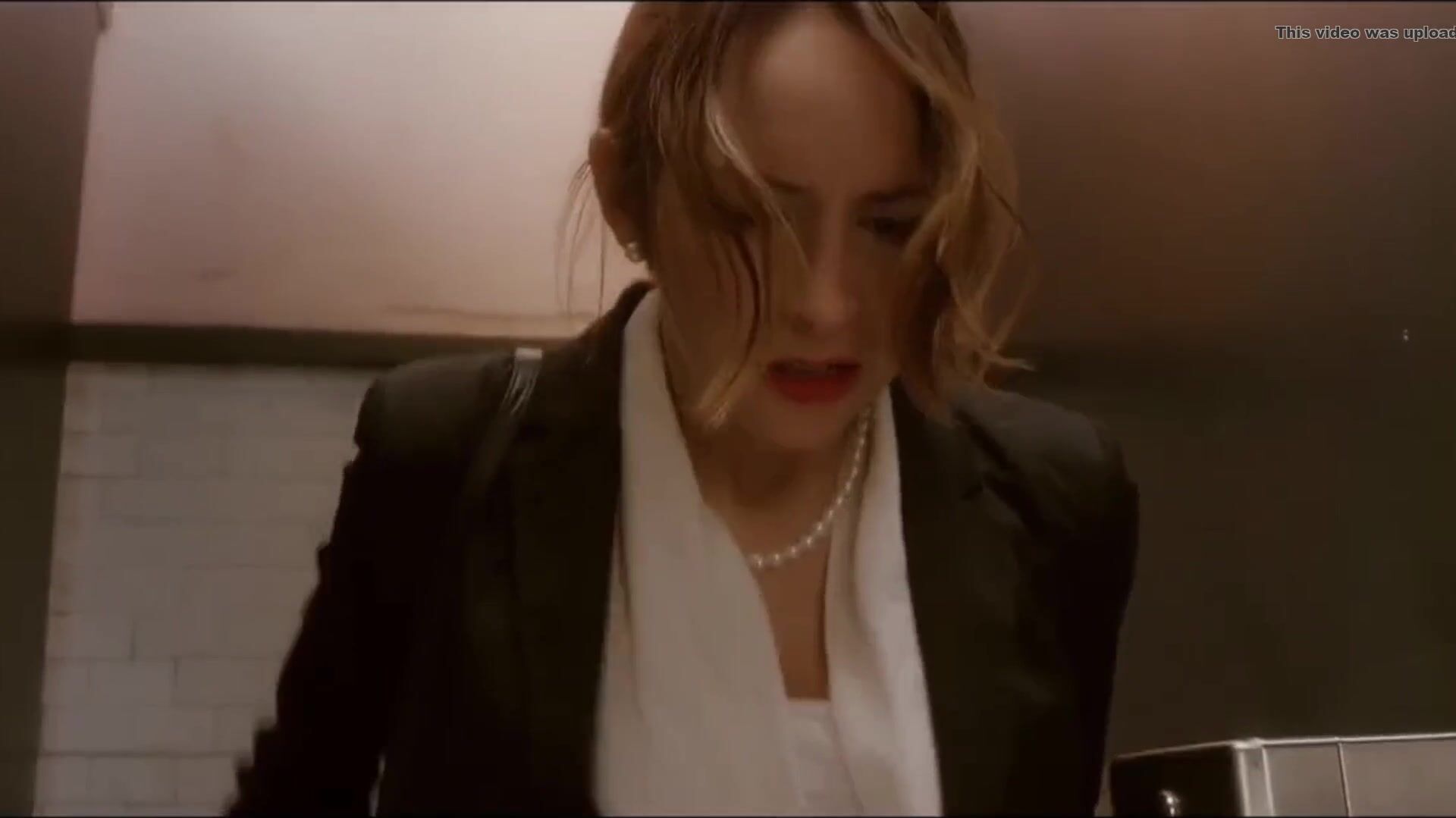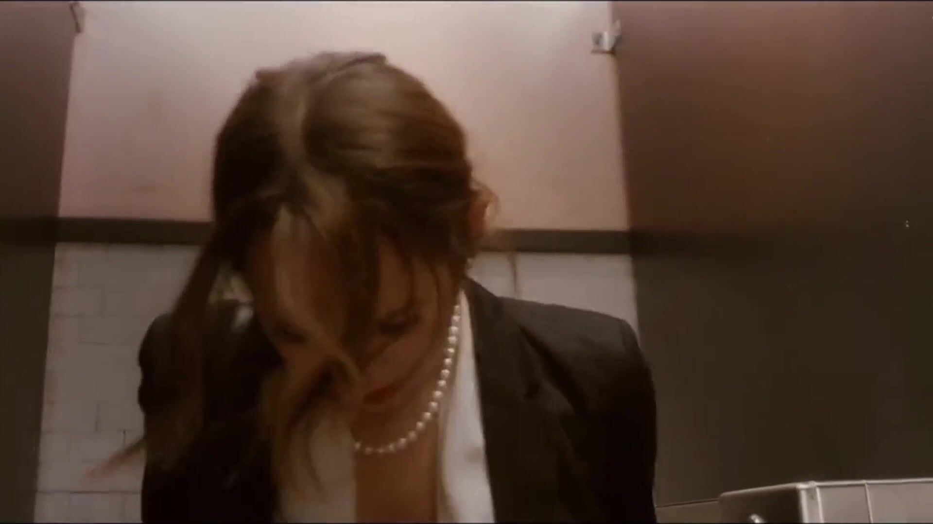Woman has diarrhea in stall with broken door scene