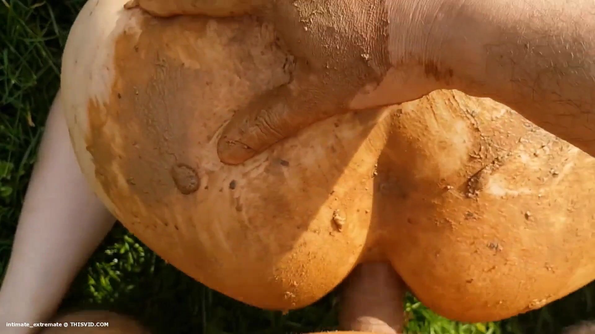Dirty girl ride a big dildo and shit on it