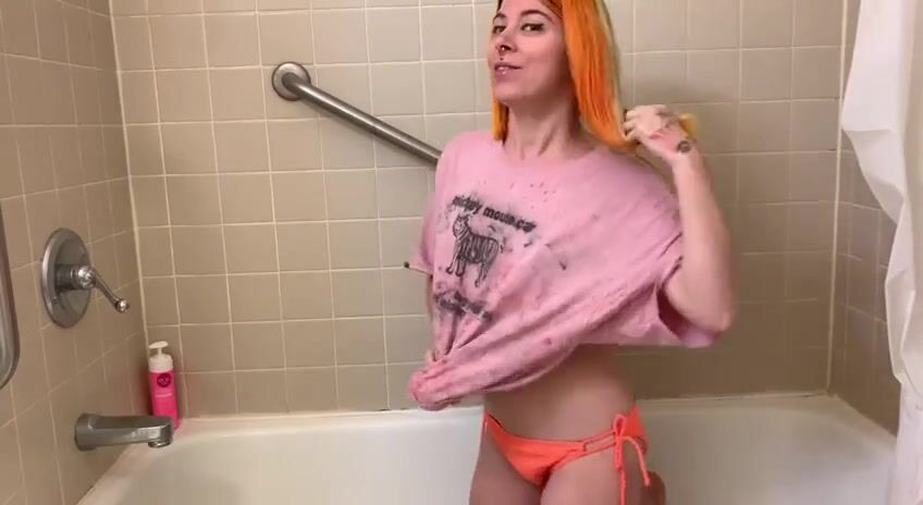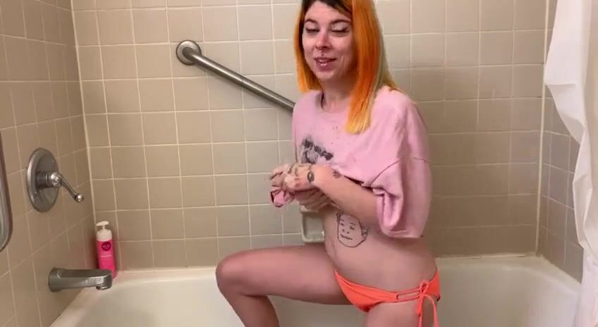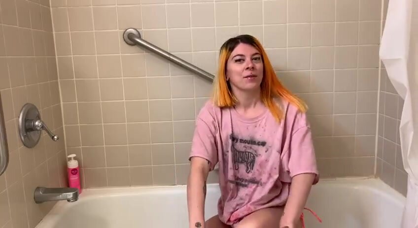 cute pervert girl smearing shit in the bathtub