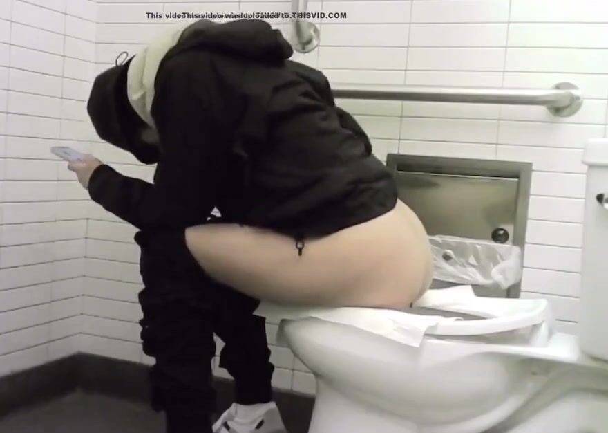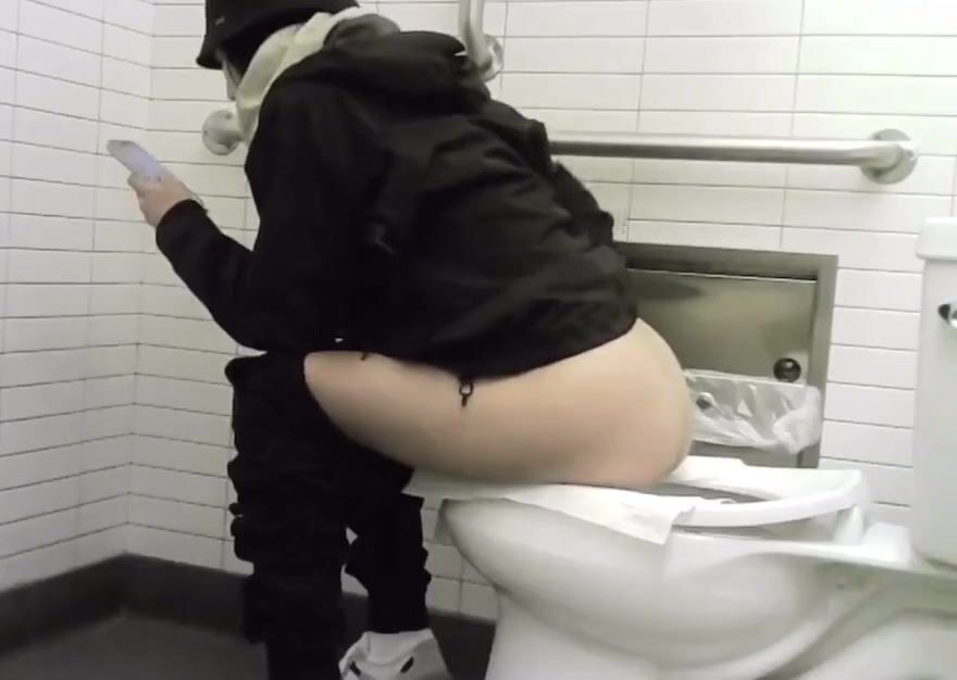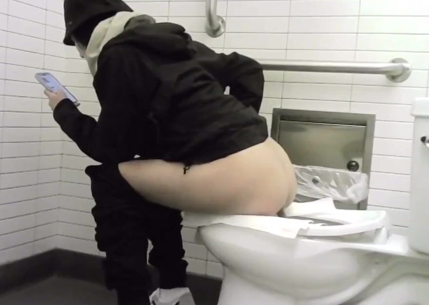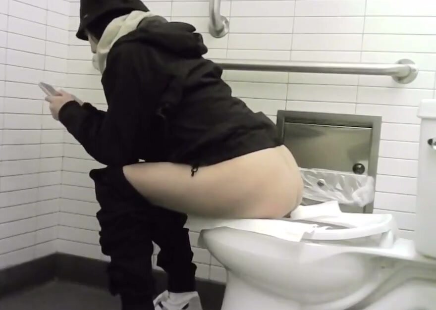 Girl pooping on public toilet - video 3