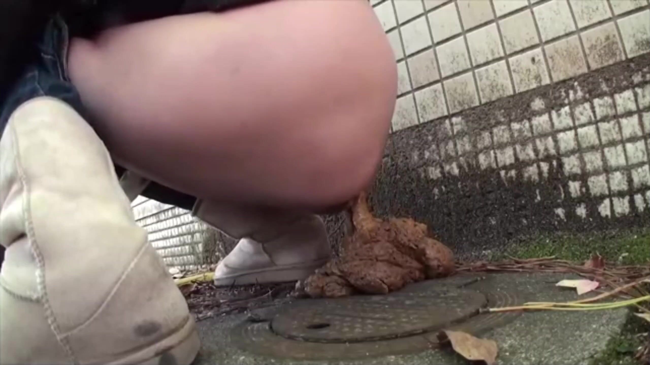 Beautiful Japanese girl poop so much outside