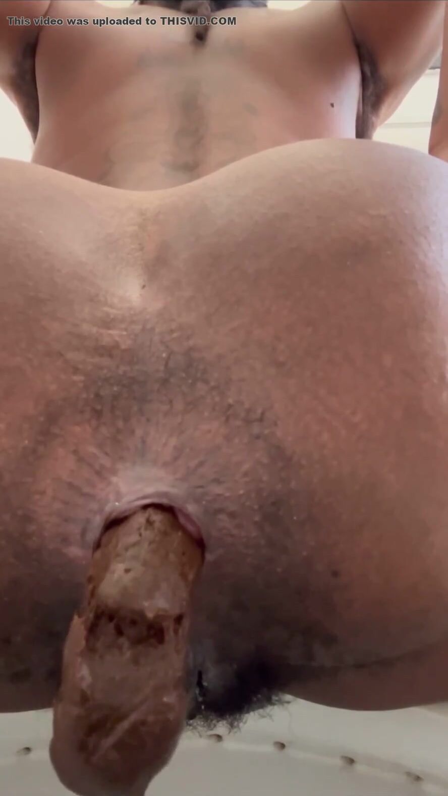 Ebony with huge ass spreads cheeks and shits