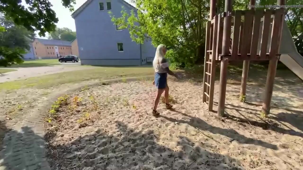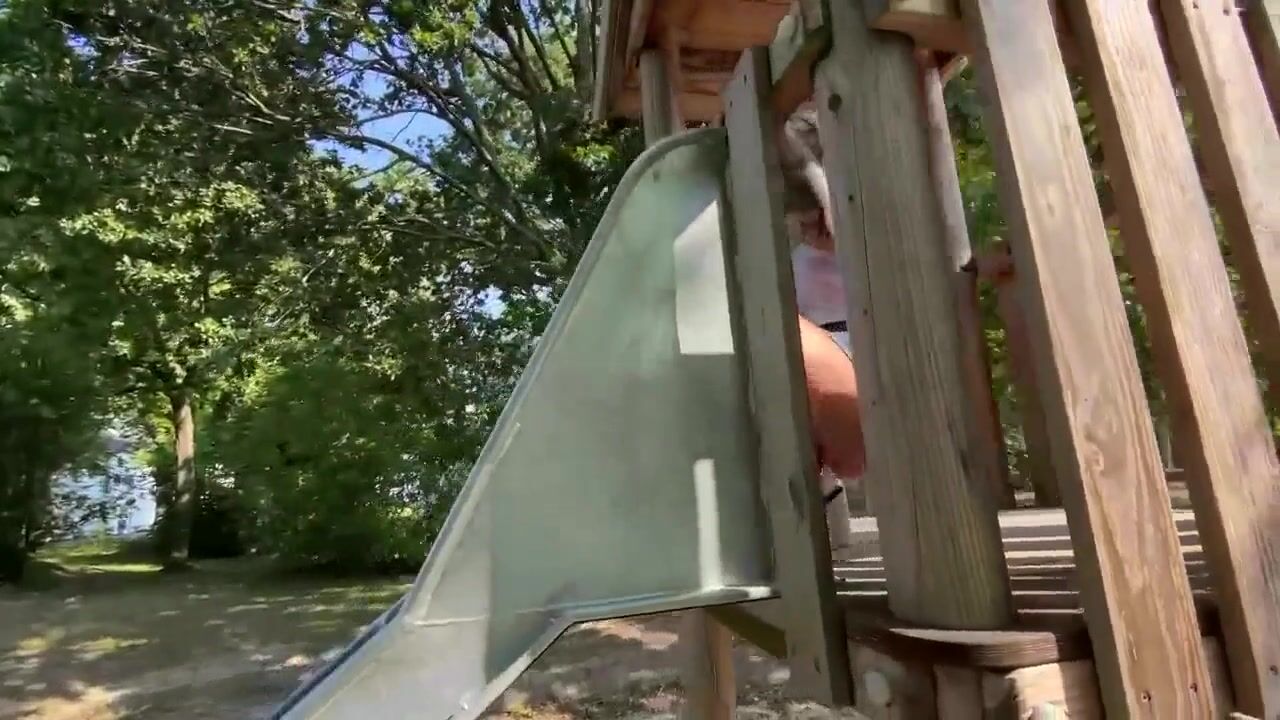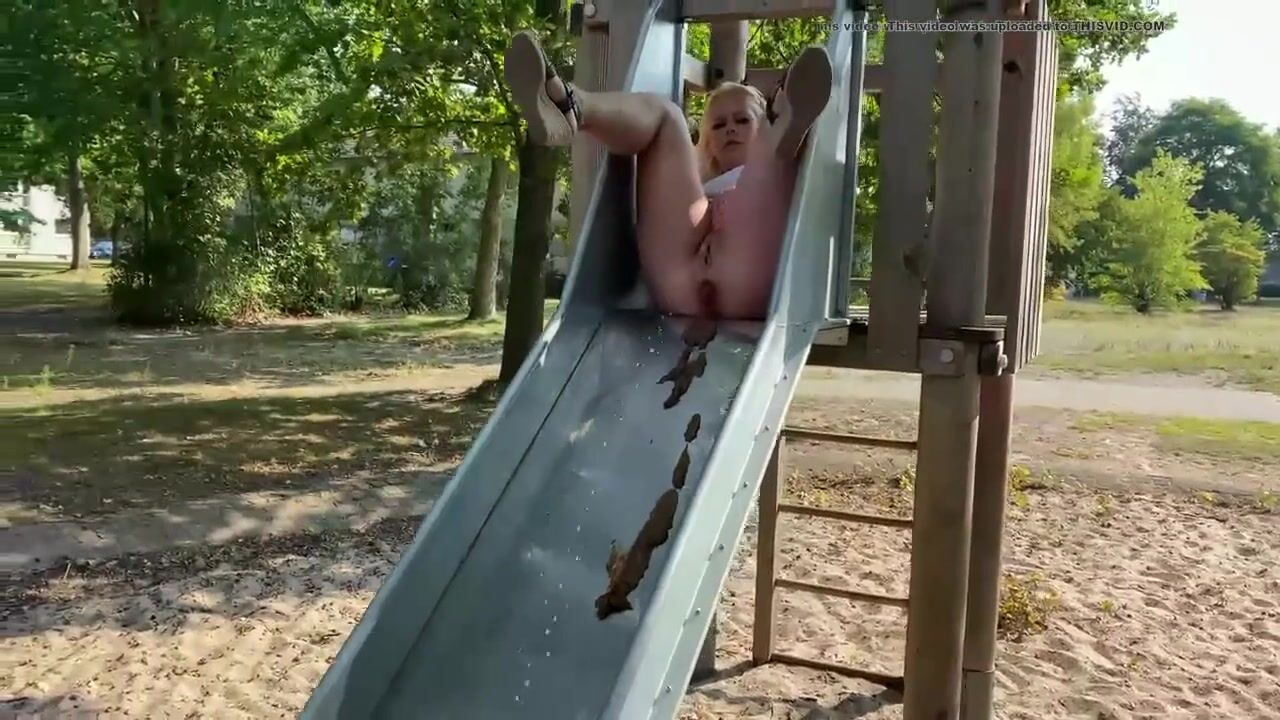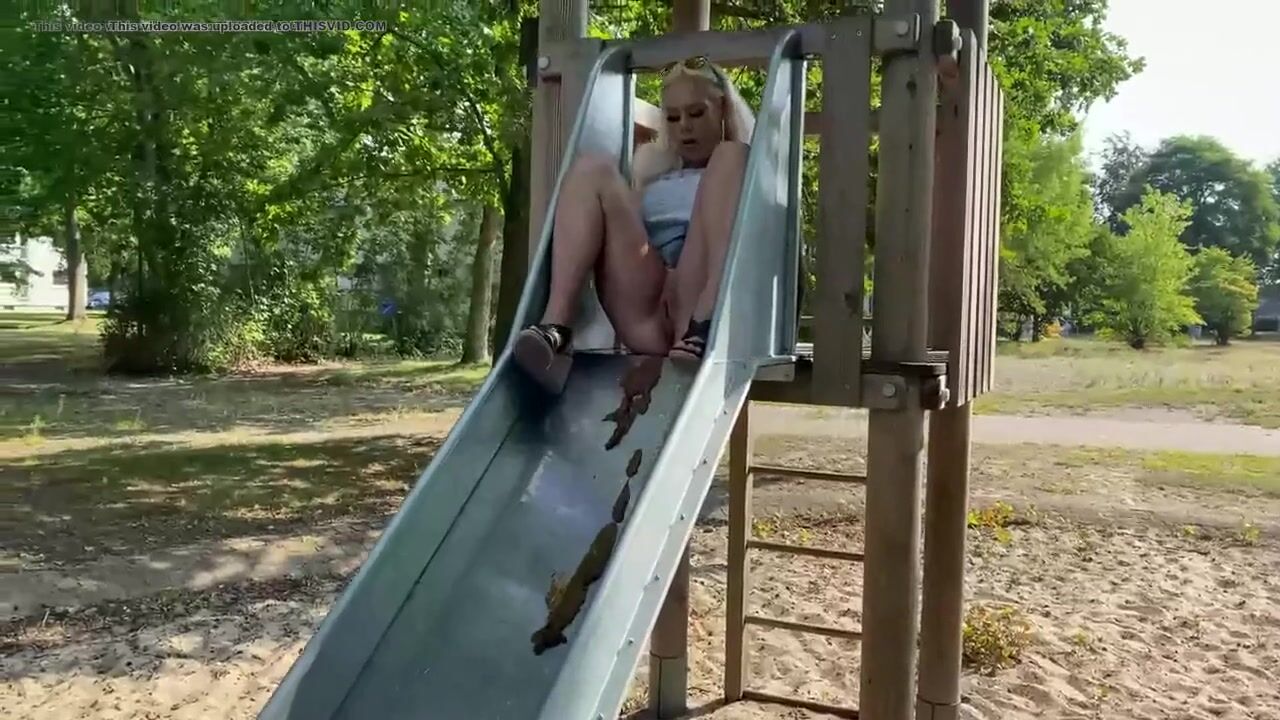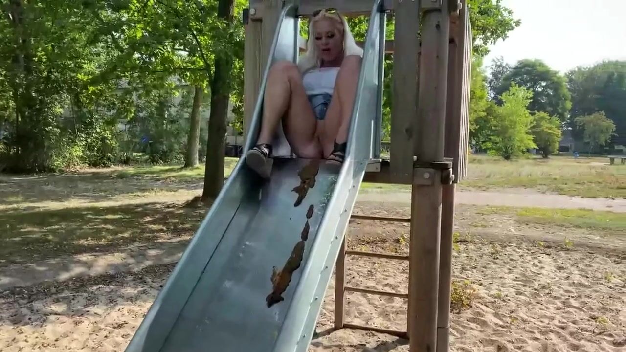 Blonde shits on slide