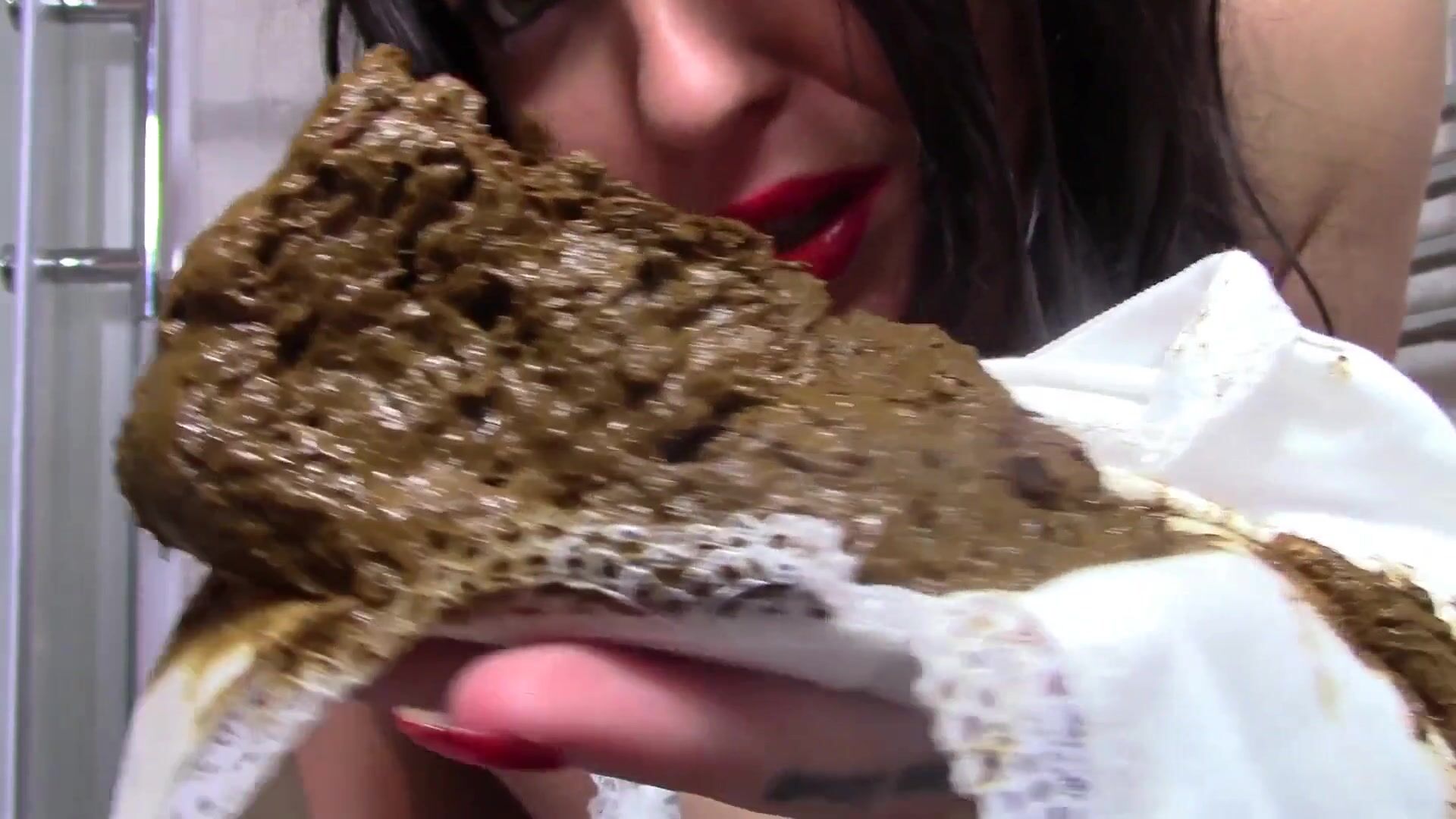 Camgirl brutal poo eating with much scat