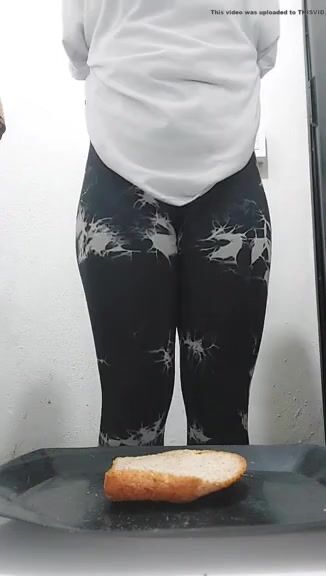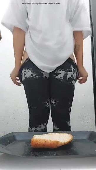 Fat ass girl with tatoos shits on a plate part 2