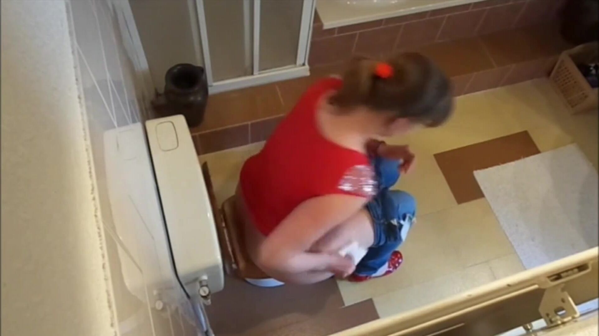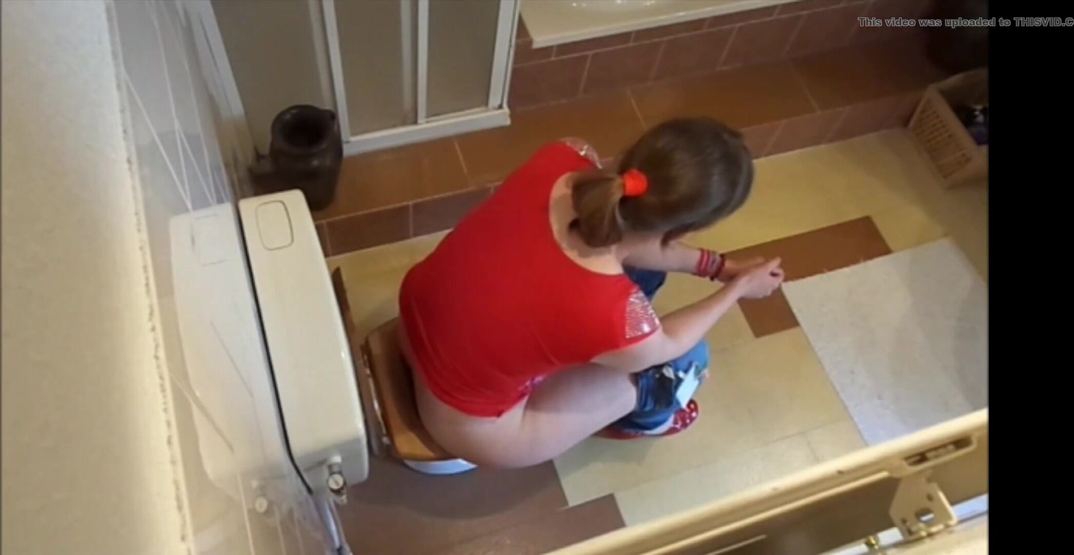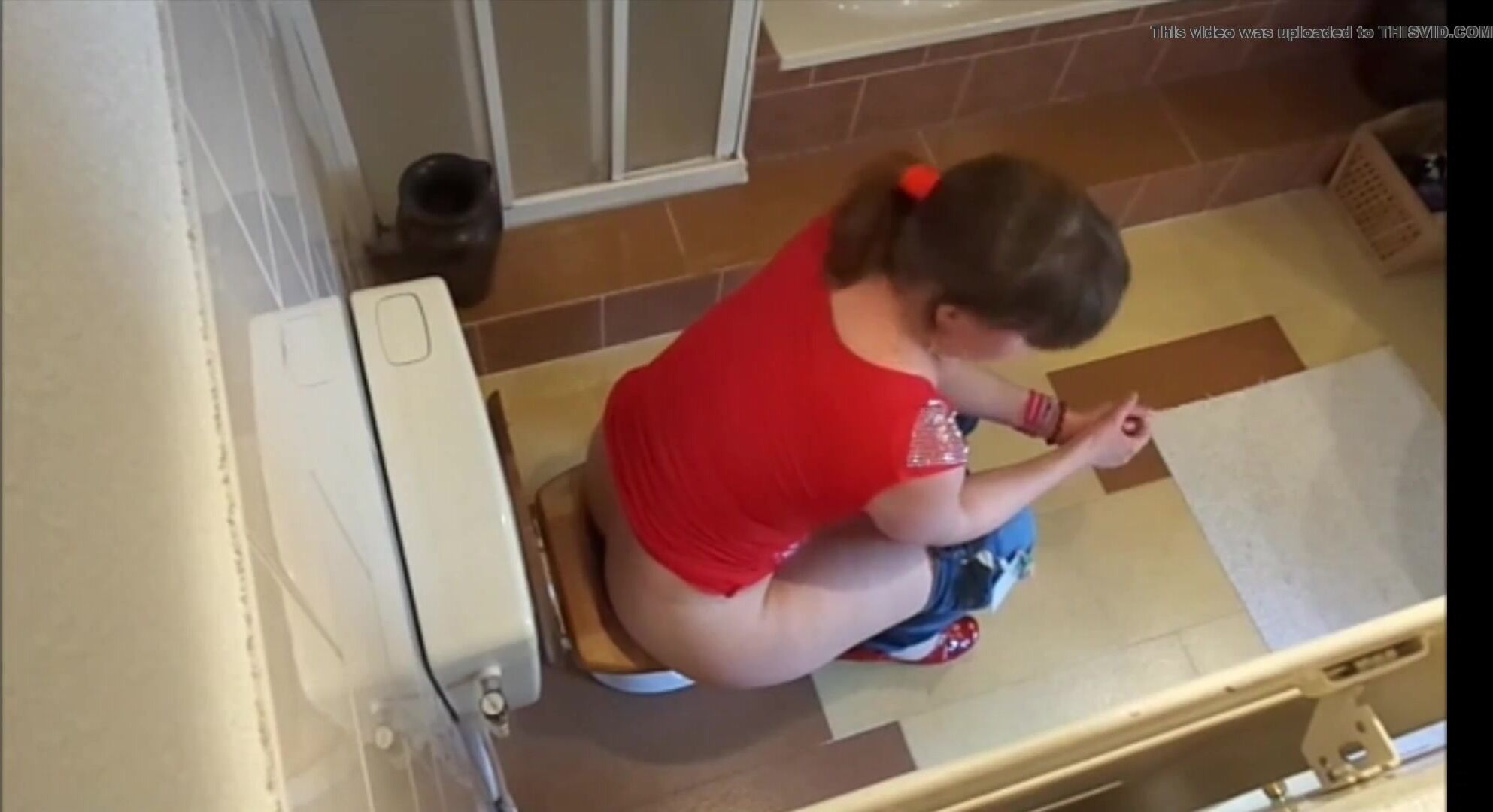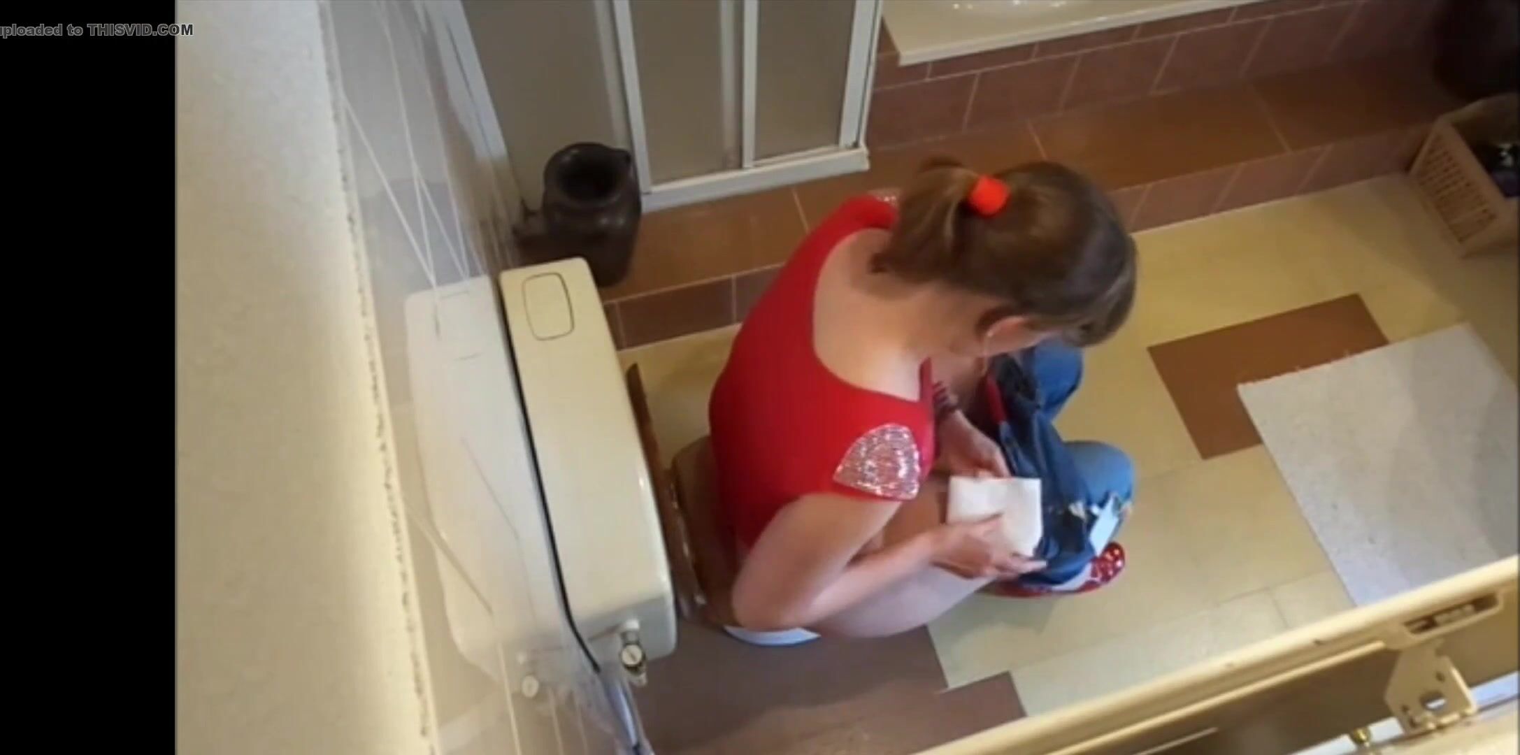 Porn catches mom with wide hips shitting