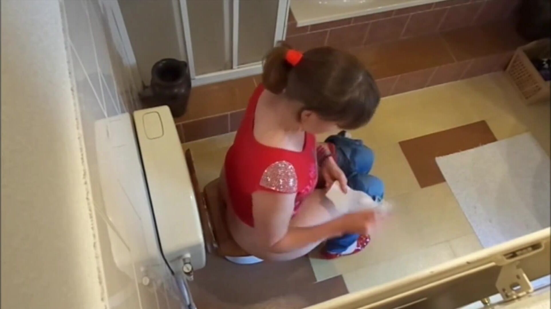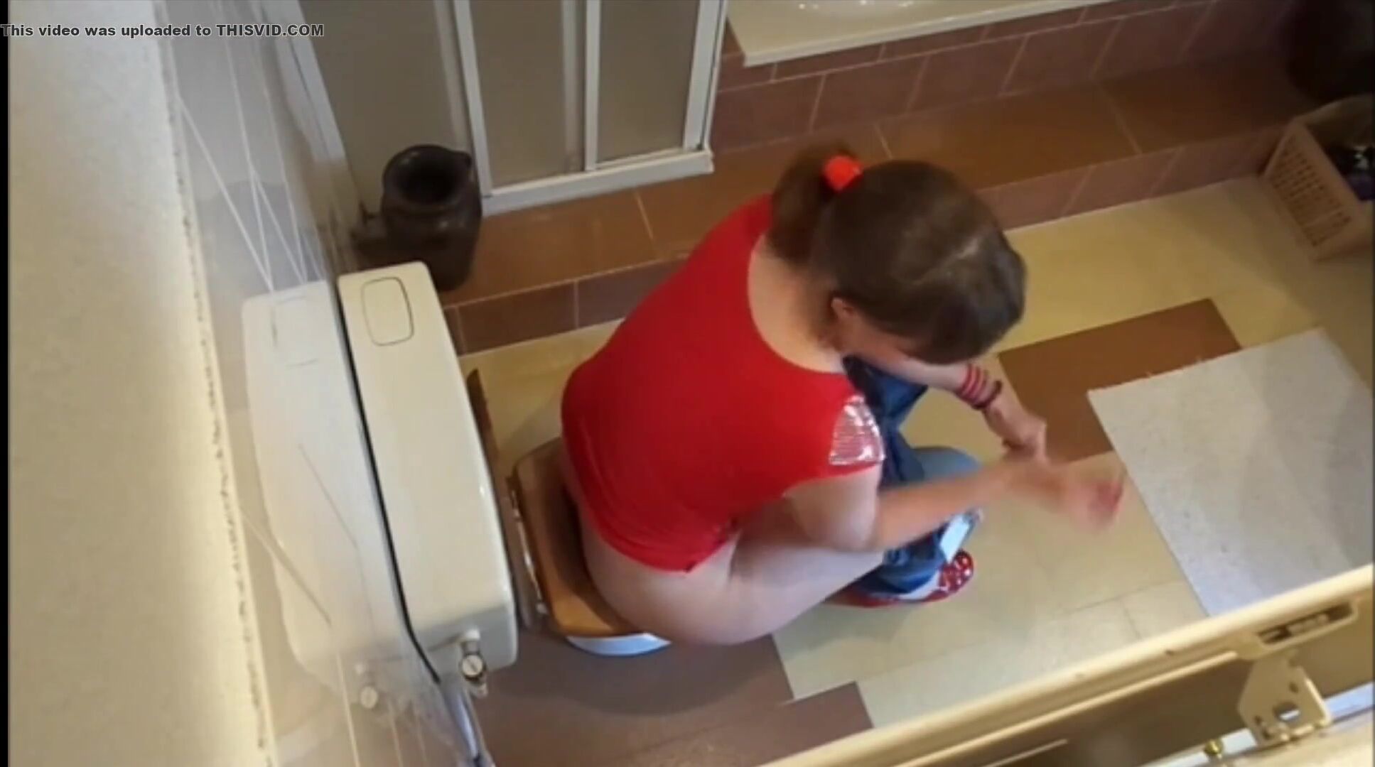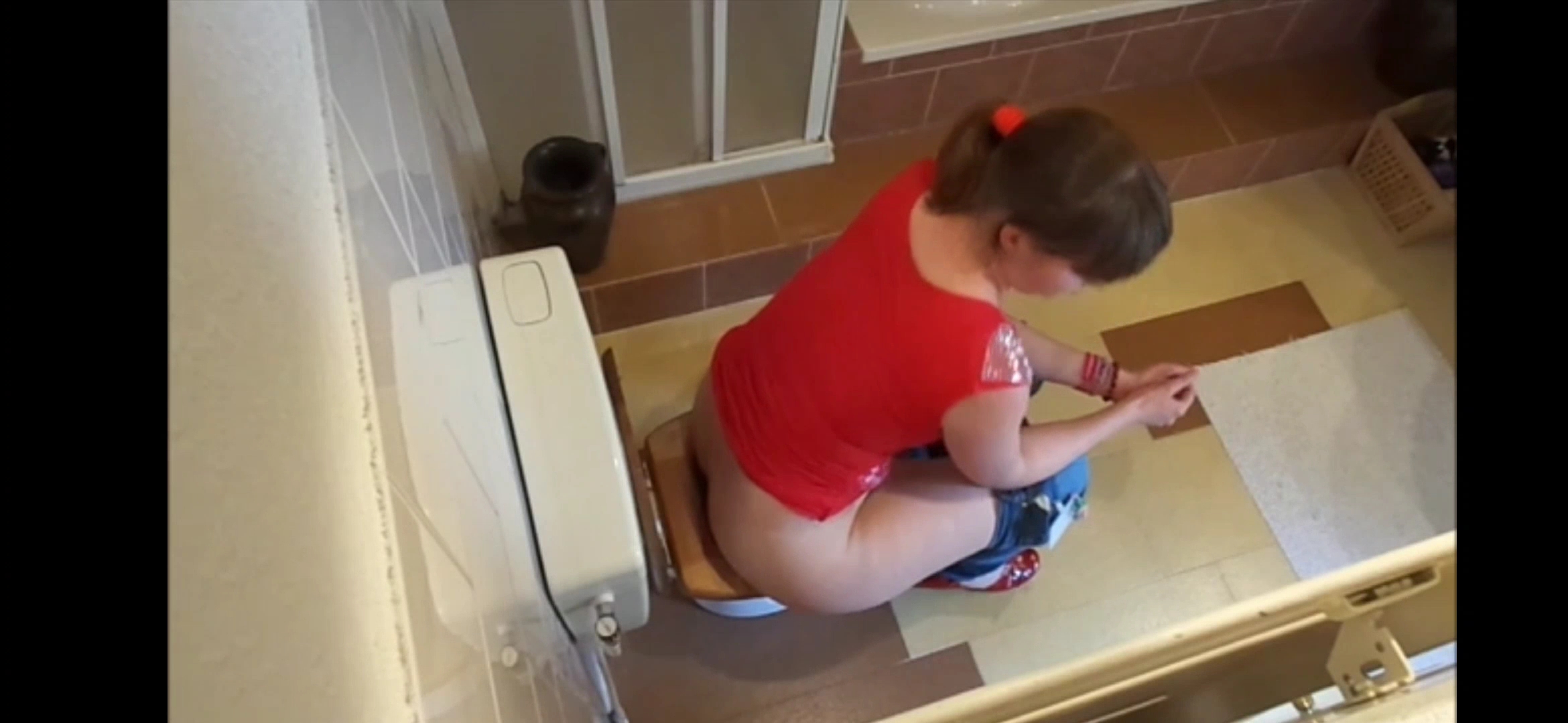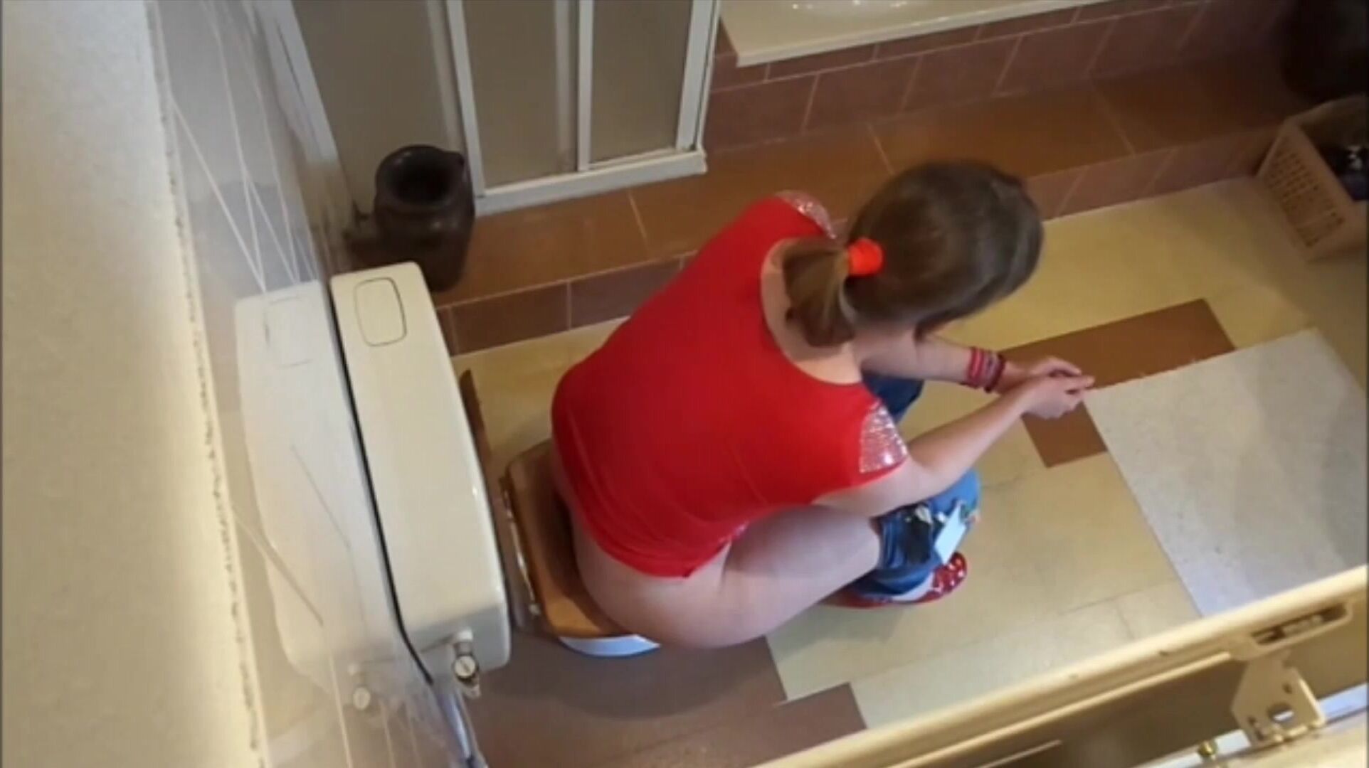 Porn catches mom with wide hips shitting