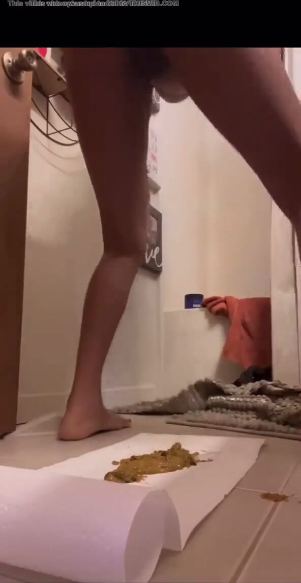 Hot thin babe shits on her floor