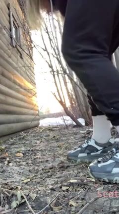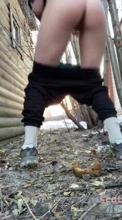 GORGEOUS GIRL POOPS IN THE WOODS. No Wipe