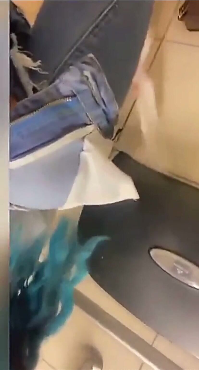 Blue haired girl dumping a hudge load