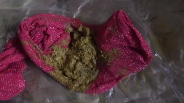 Runny poop in red pantyhose