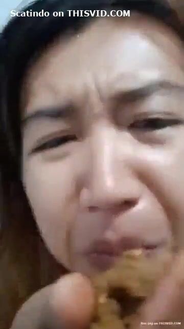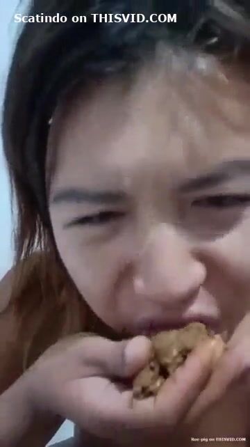 Asian girl tastes her shit