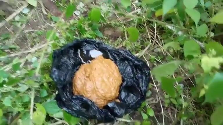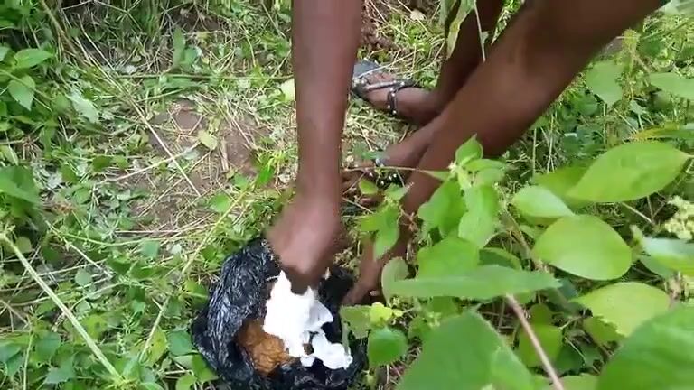 African lady pooping in the jungle..