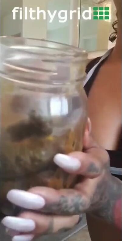 Redbone shitting in a jar