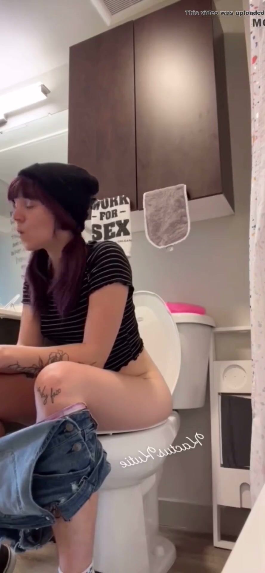 Girl open wide legs and shitting on the toilet floor