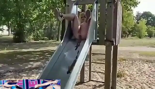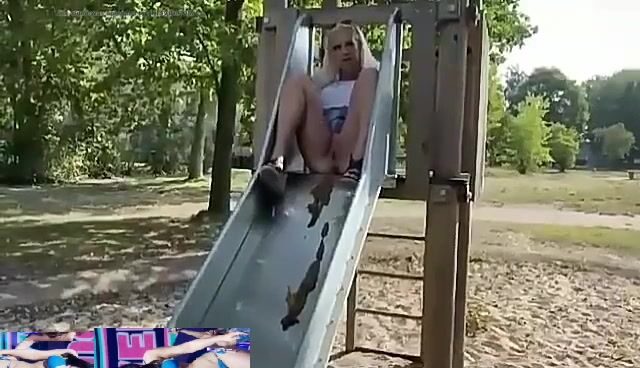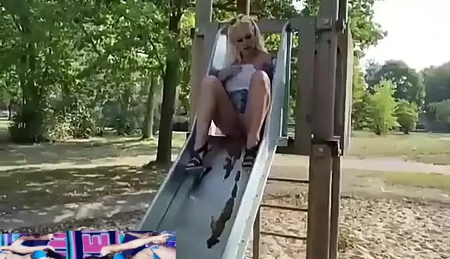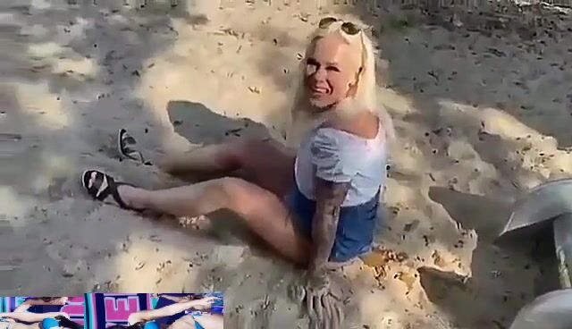 Dirty blonde shitting in public