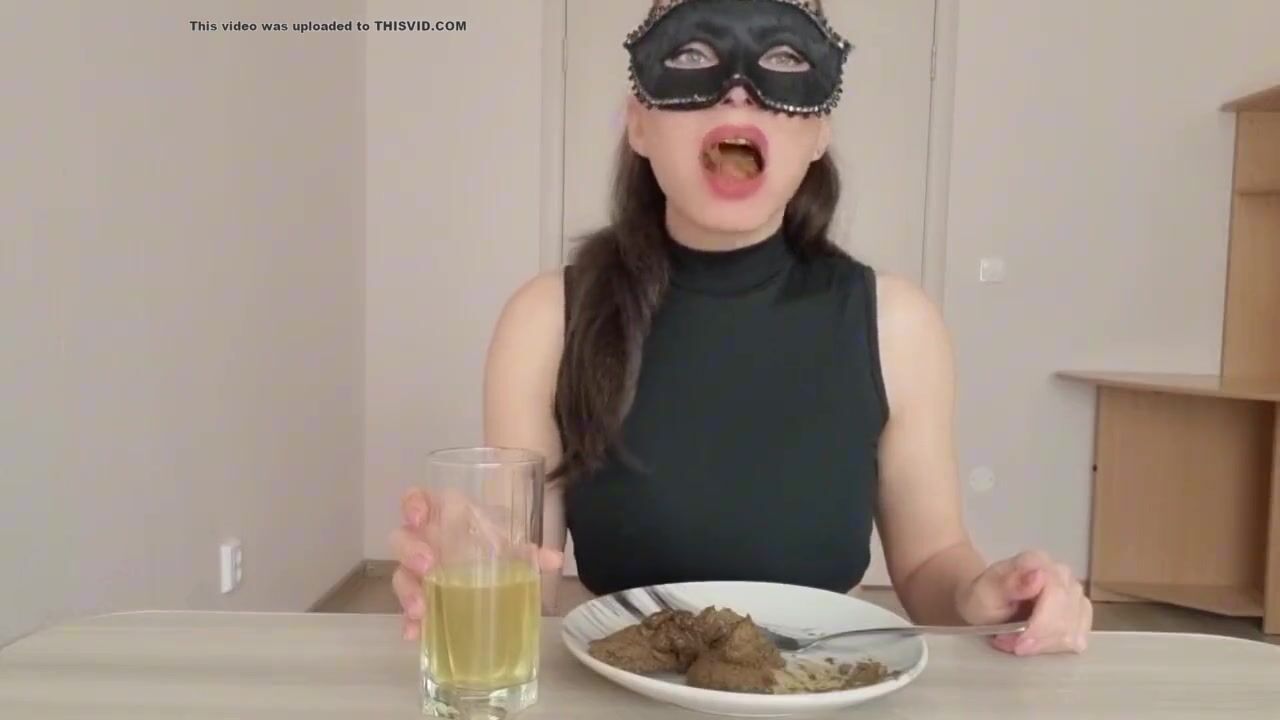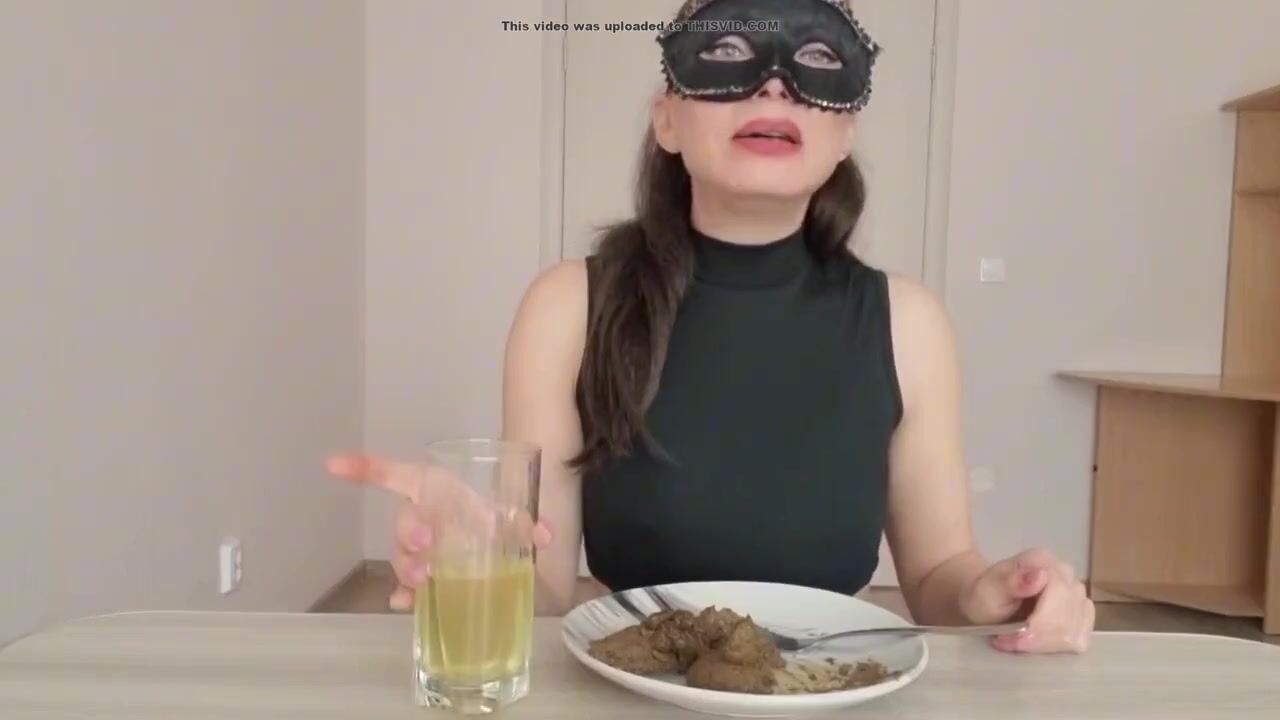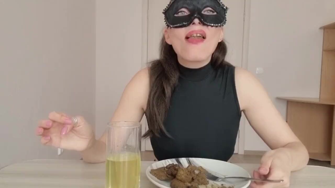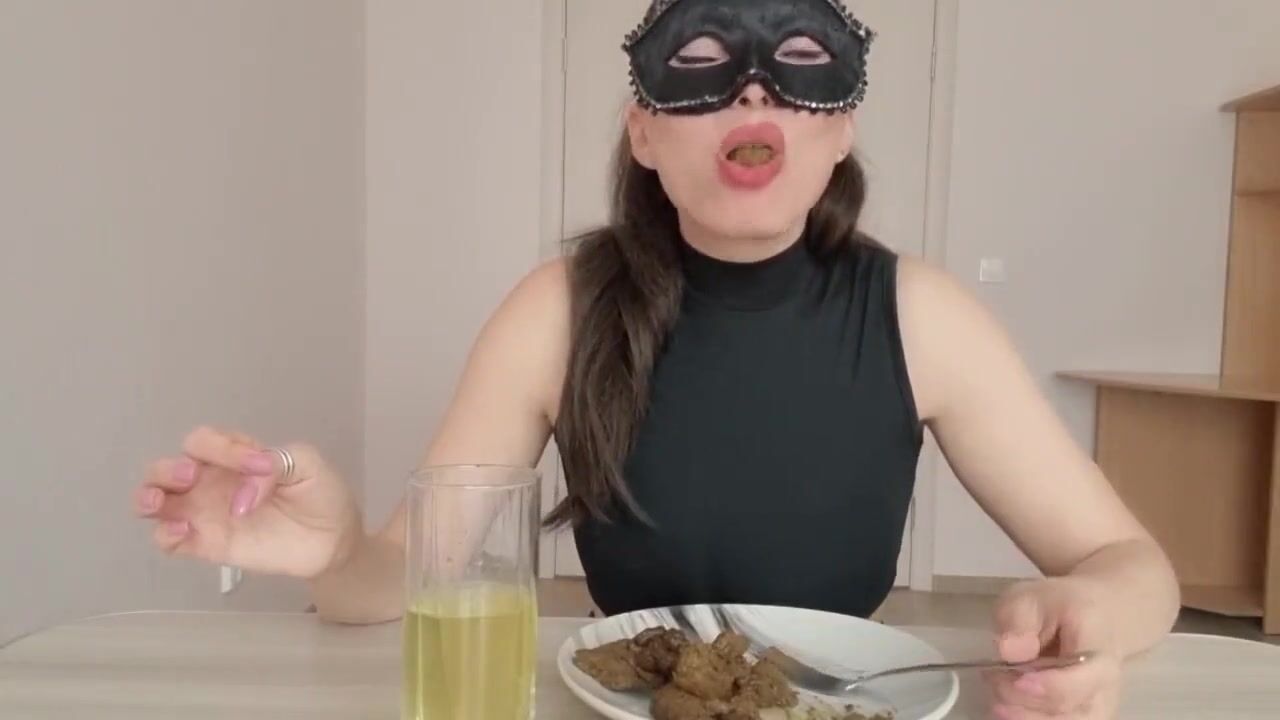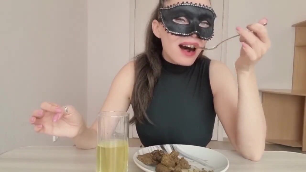 Masked blonde eating her own shit
