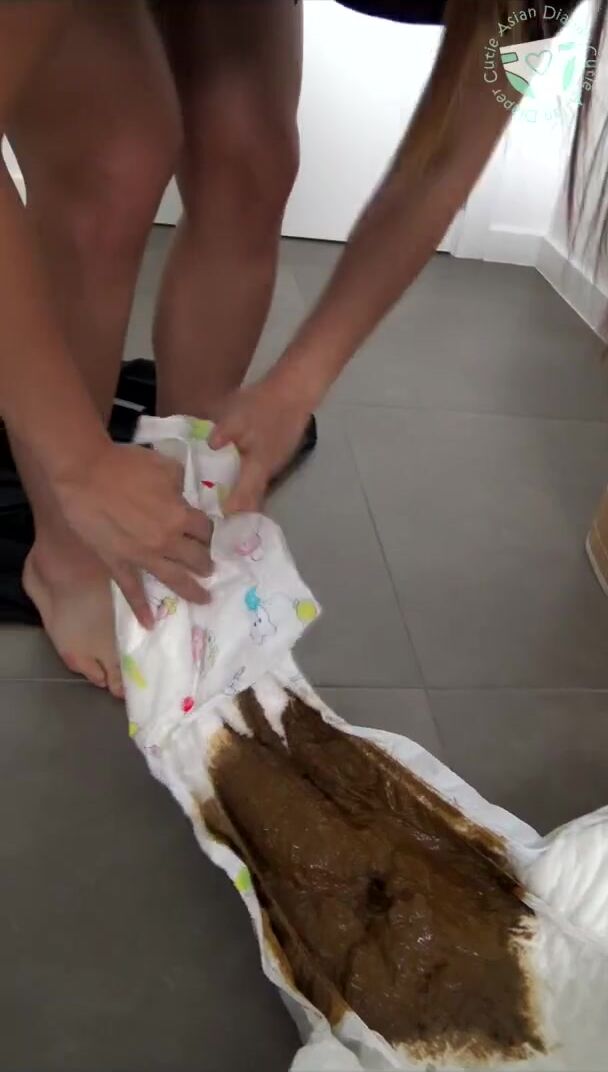 Asian girl diaper messing..