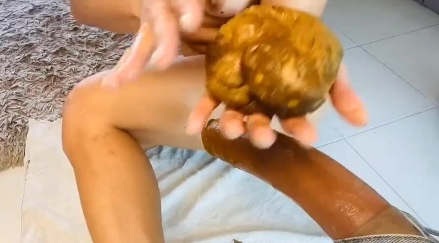 Girl shitting in the shower and smering it on body