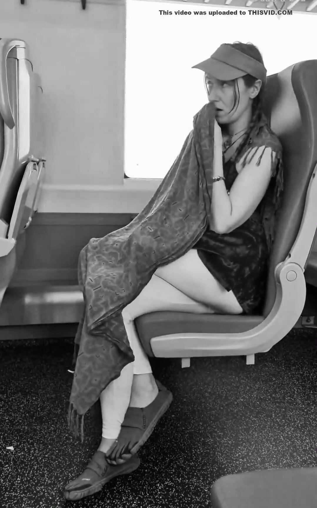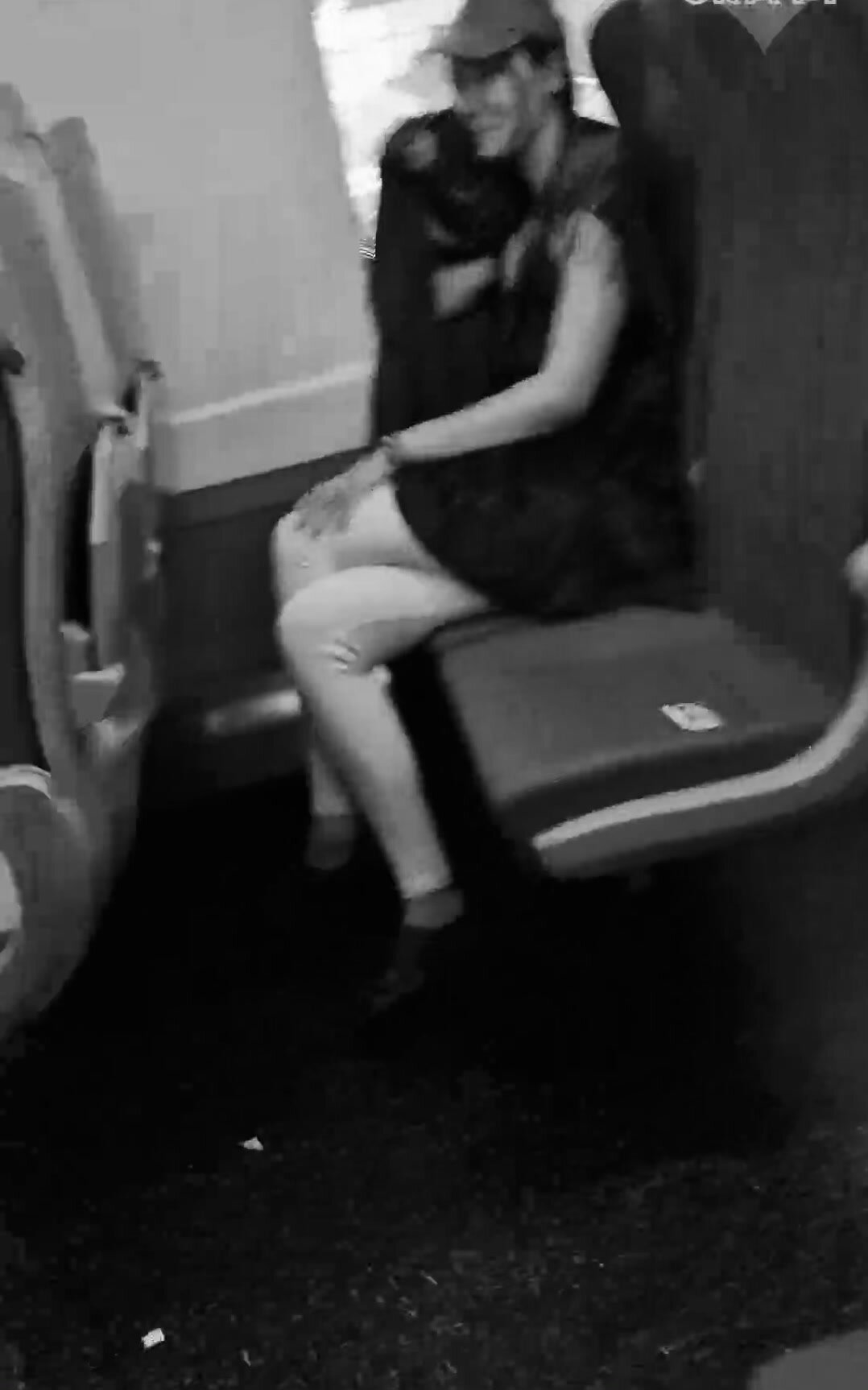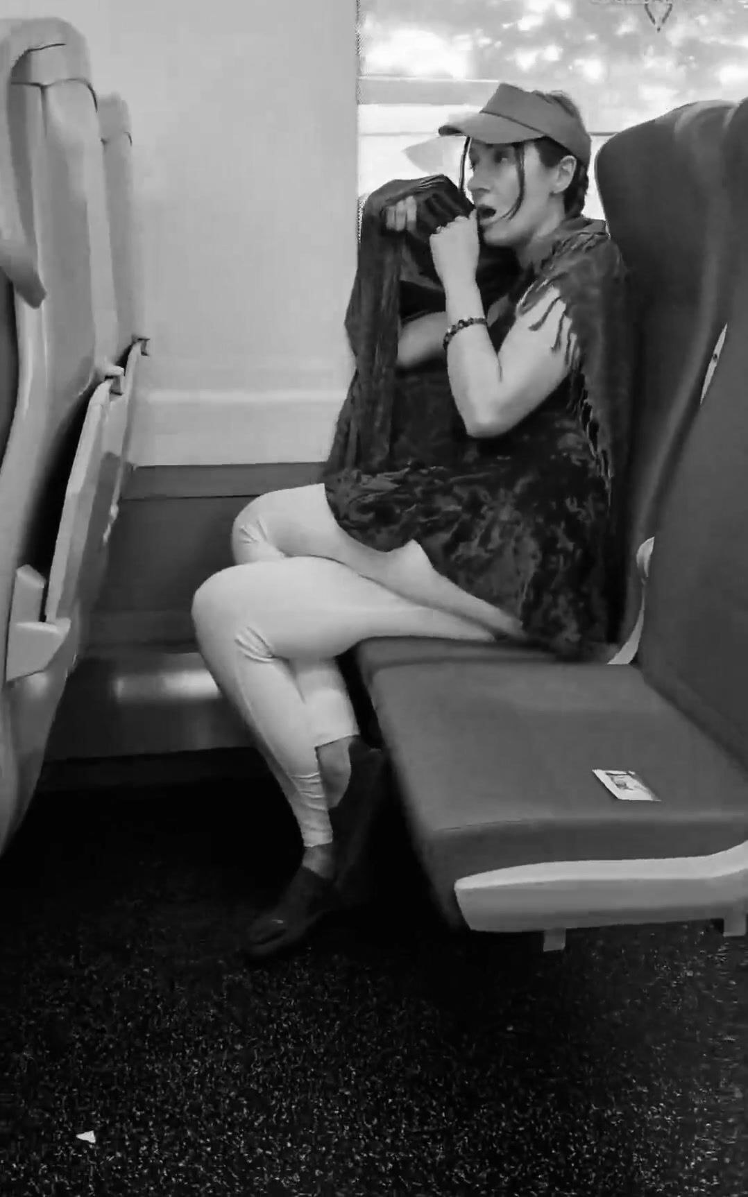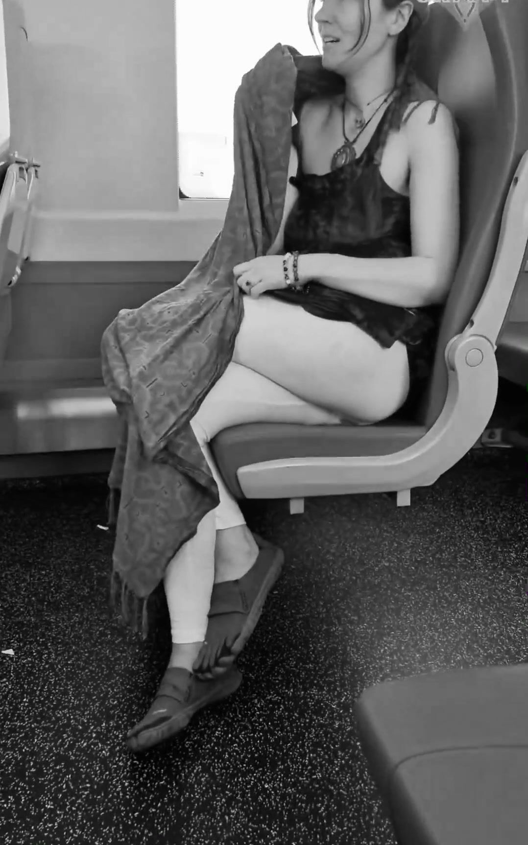girl messes leggings on bus