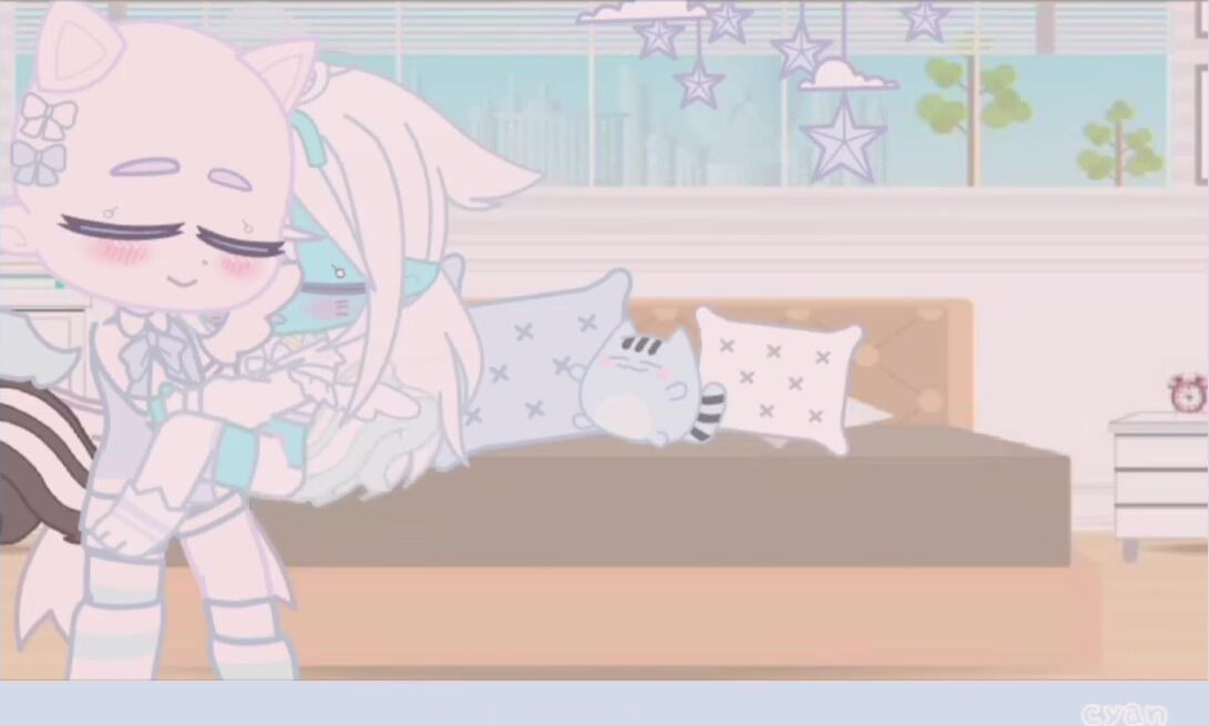 Cyan is cradled till she fills her diaper