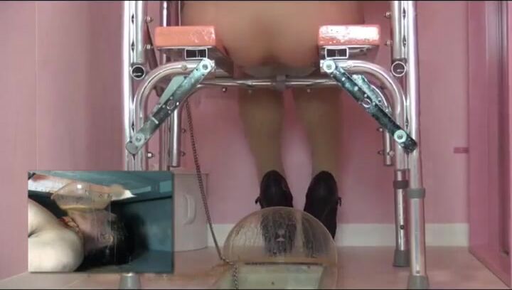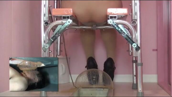 Girl open wide legs and shitting on the toilet floor