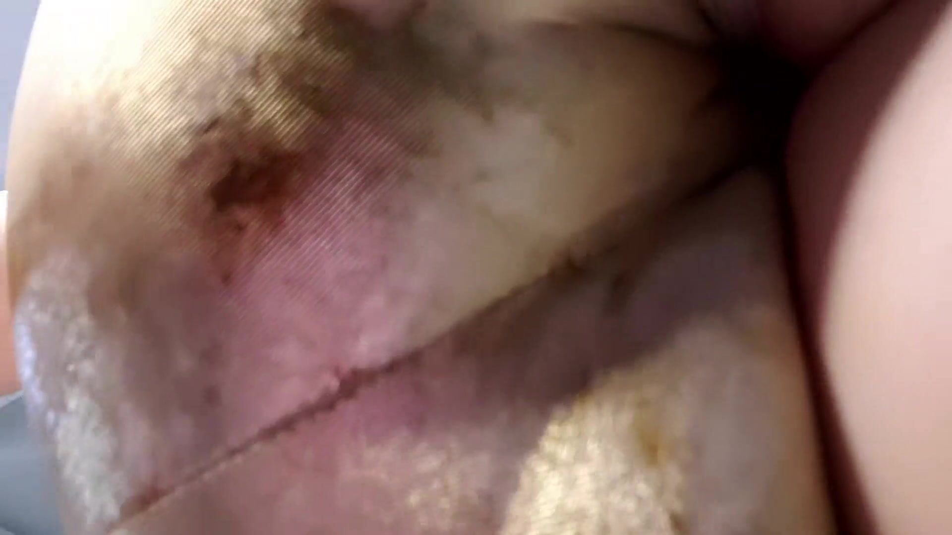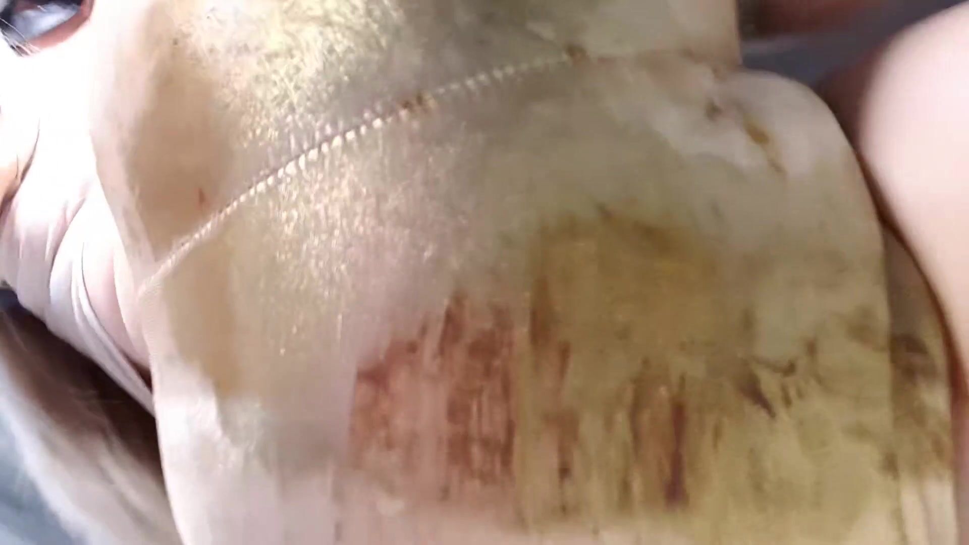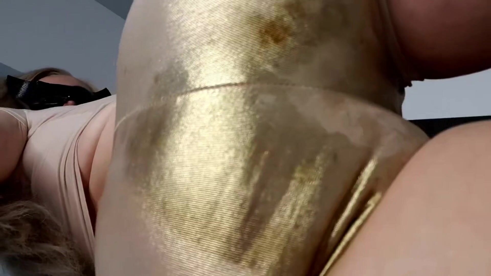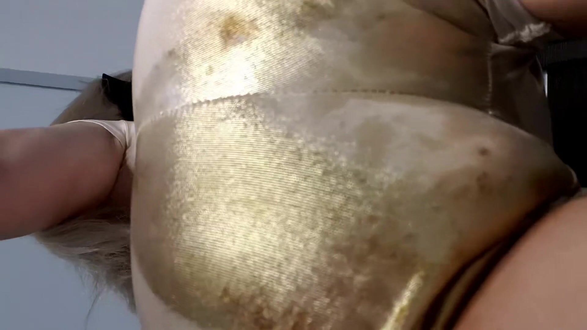 Big poop squashes in shiny pants