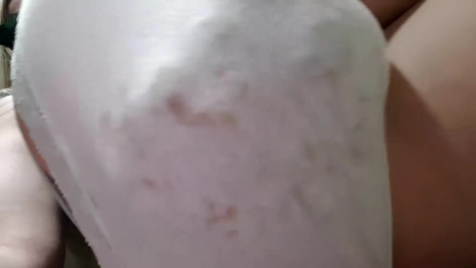 Big poop bulge in plain white panties